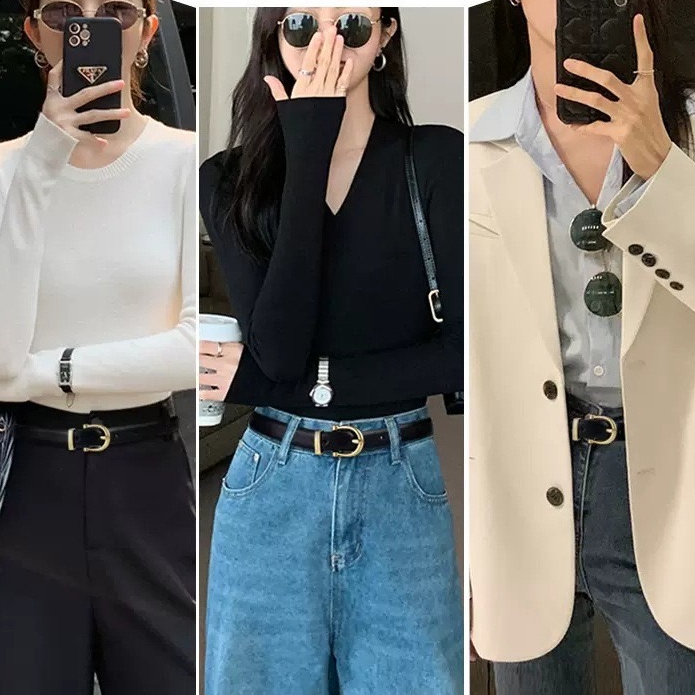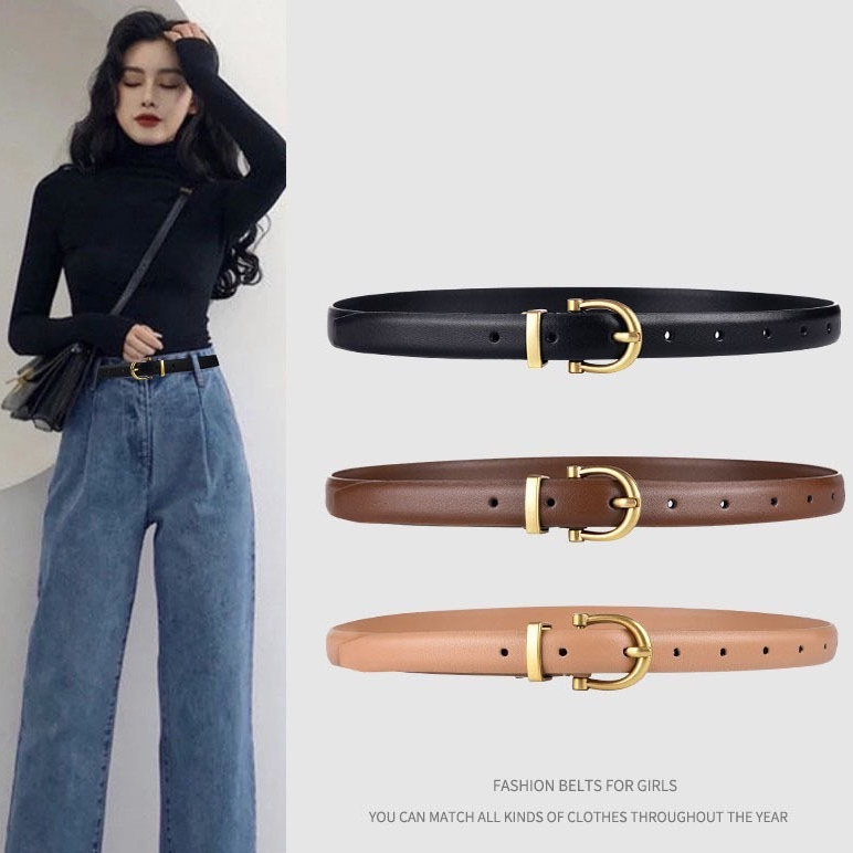 {พร้อมส่งจากไทย}เข็มขัดหนังนิ่ม คุณภาพสูง แฟชั่นสำหรับผู้หญิง เข็มขัดแฟชั่นผู้หญิงเกาหลี เข็มขัดเส้นเล็ก เครื่องประดับสตรี (GC-211)