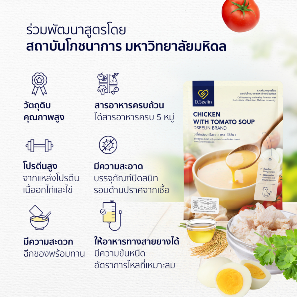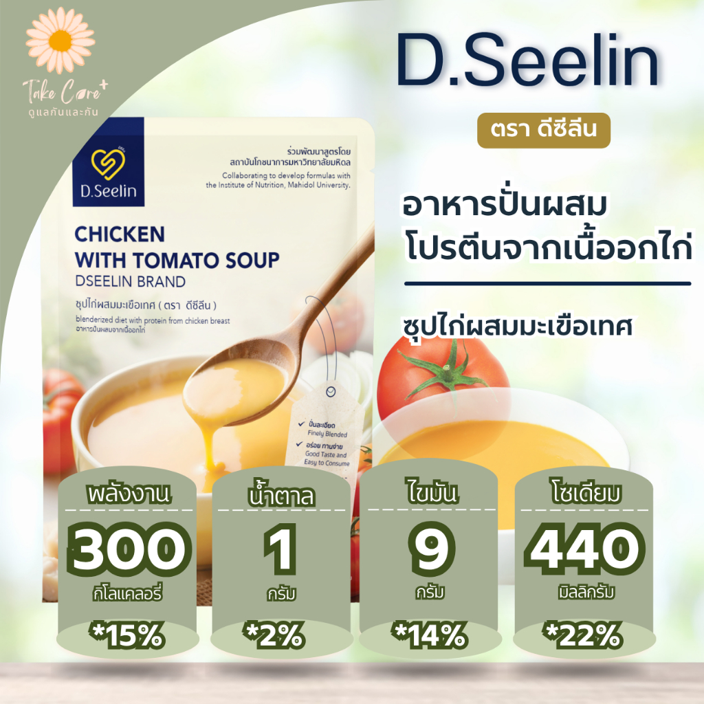D Seelin อาหารปั่นผสมโปรตีนจากเนื้ออกไก่ ซุปไก่ผสมมะเขือเทศ ขนาด 300 กรัม ยกลัง 28 ซอง 8,400 กรัม ตราดีซีลีน