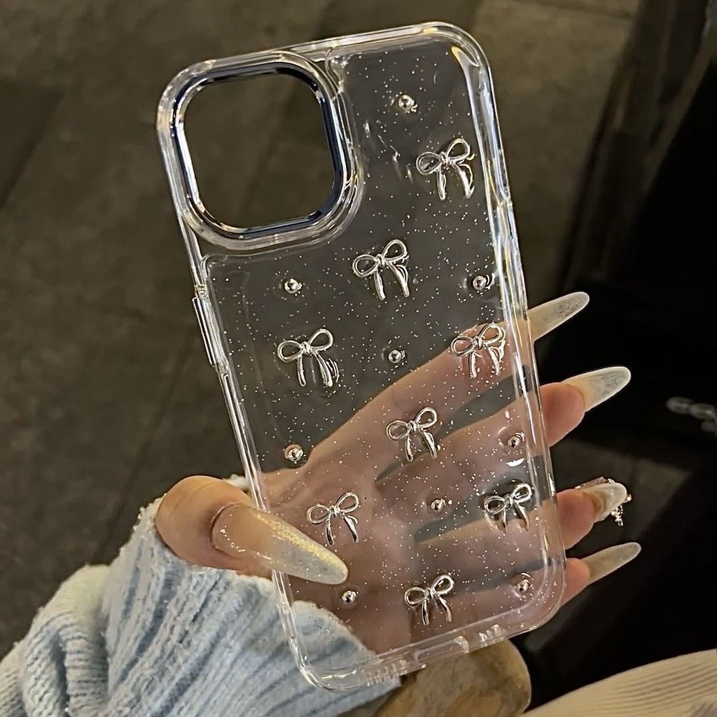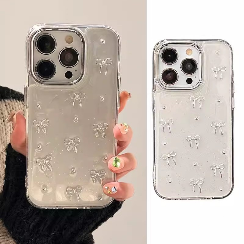 เคสโทรศัพท์มือถือ กันกระแทก ประดับโบว์ 3D สไตล์เกาหลี สําหรับ IPhone 17 Pro Max 16 15 14 Pro Max IPhone 11 IPhone 15 14 13 12 11 Pro Max 15 14 Plus