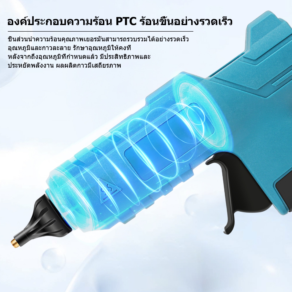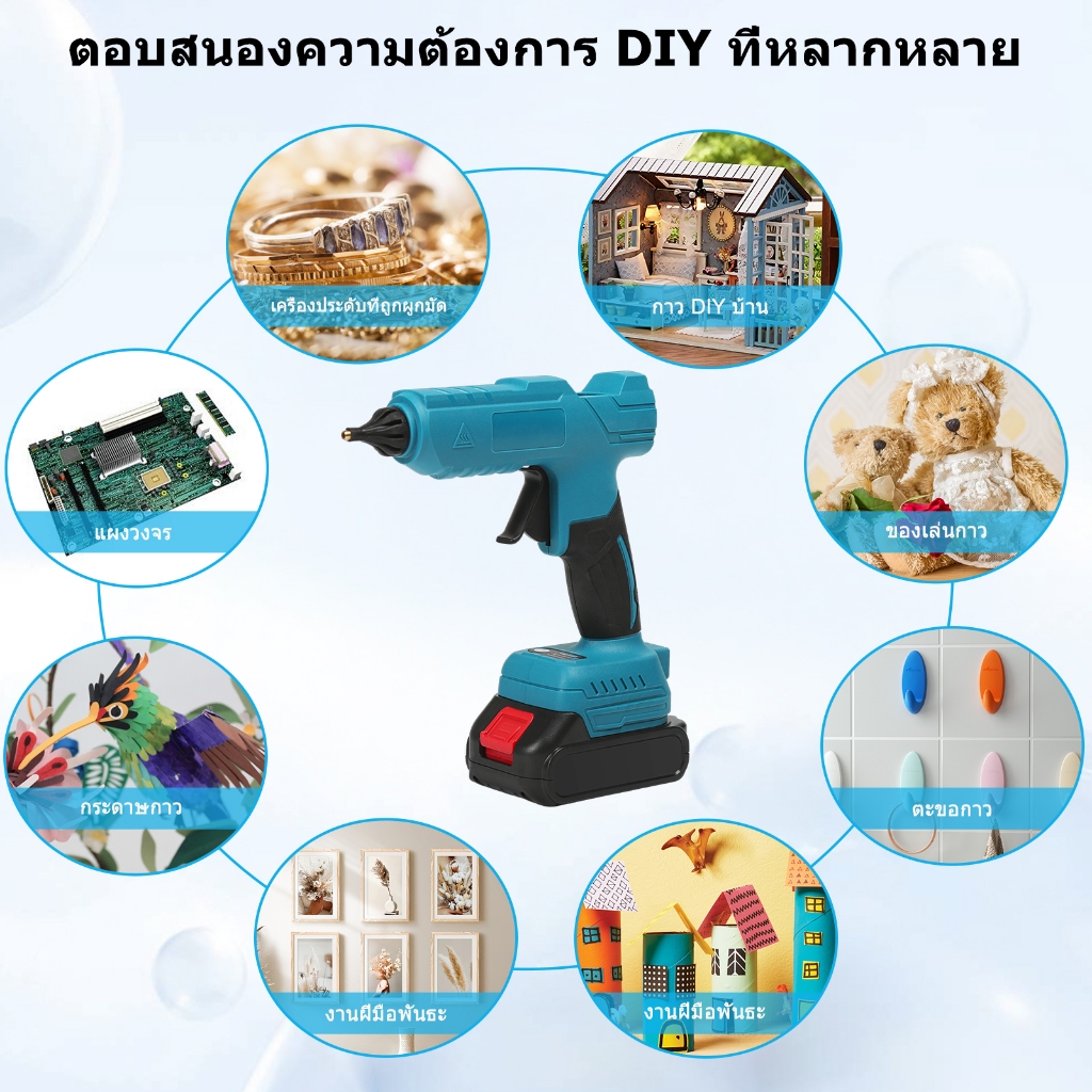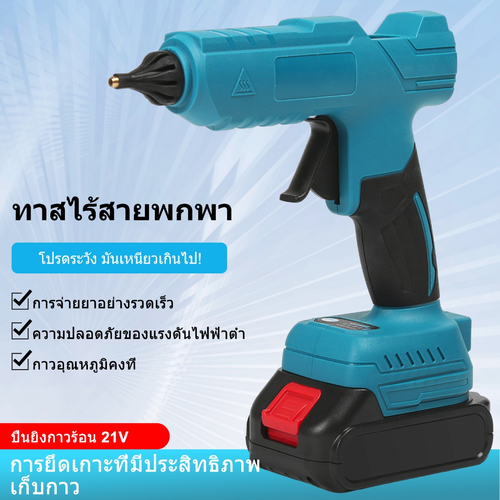 ปืนกาวร้อนละลายไร้สายที่ใช้พลังงานแบตเตอรี่ ขนาดเล็กและน้ำหนักเบา พกพาสะดวกในกระเป๋าเป้สะพายหลังหรือกล่องเครื่องมือ