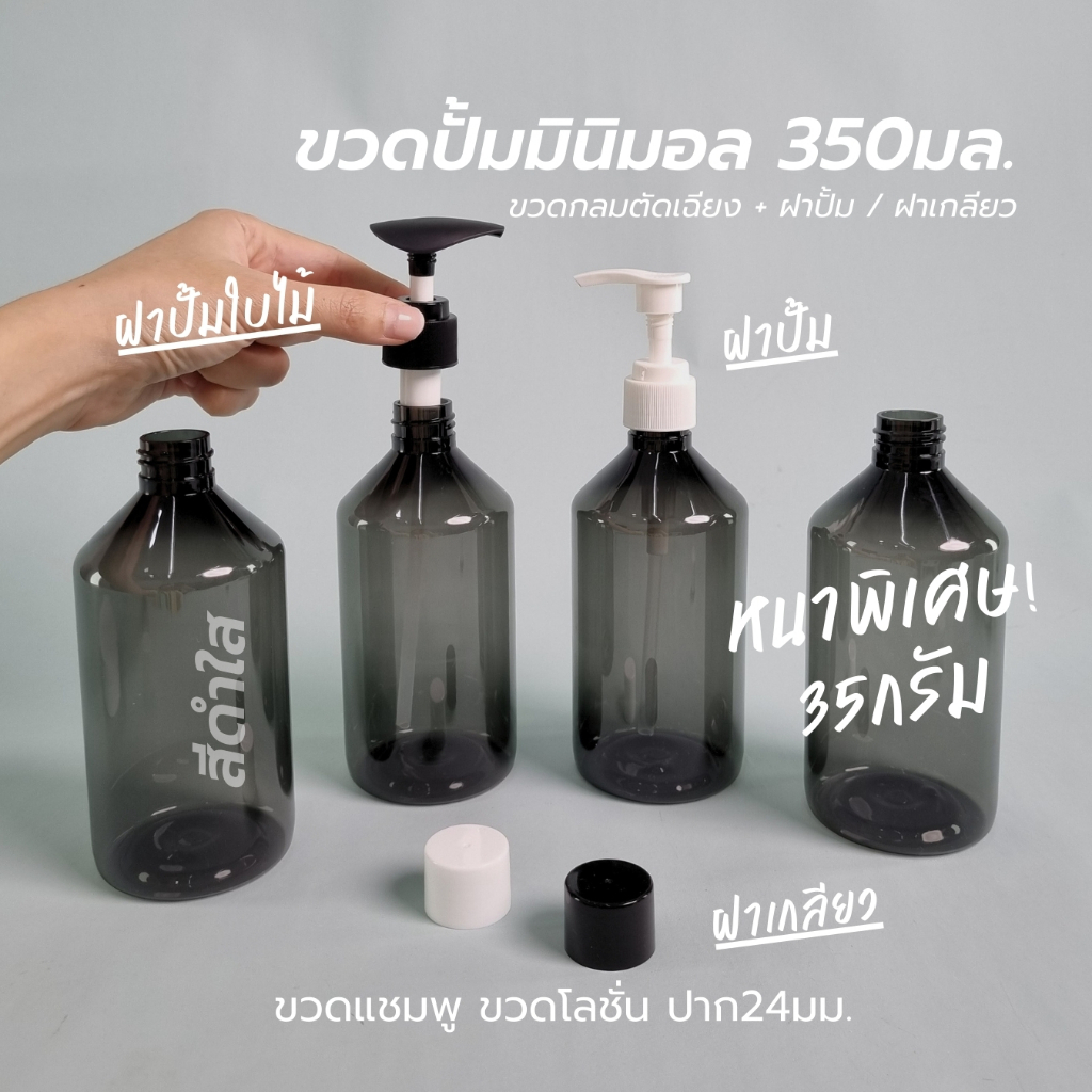 ขวดปั้มมินิมอล ดำใส 350มล ขวดเครื่องสำอางค์ PAPAPACK
