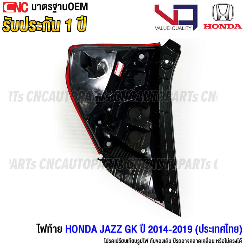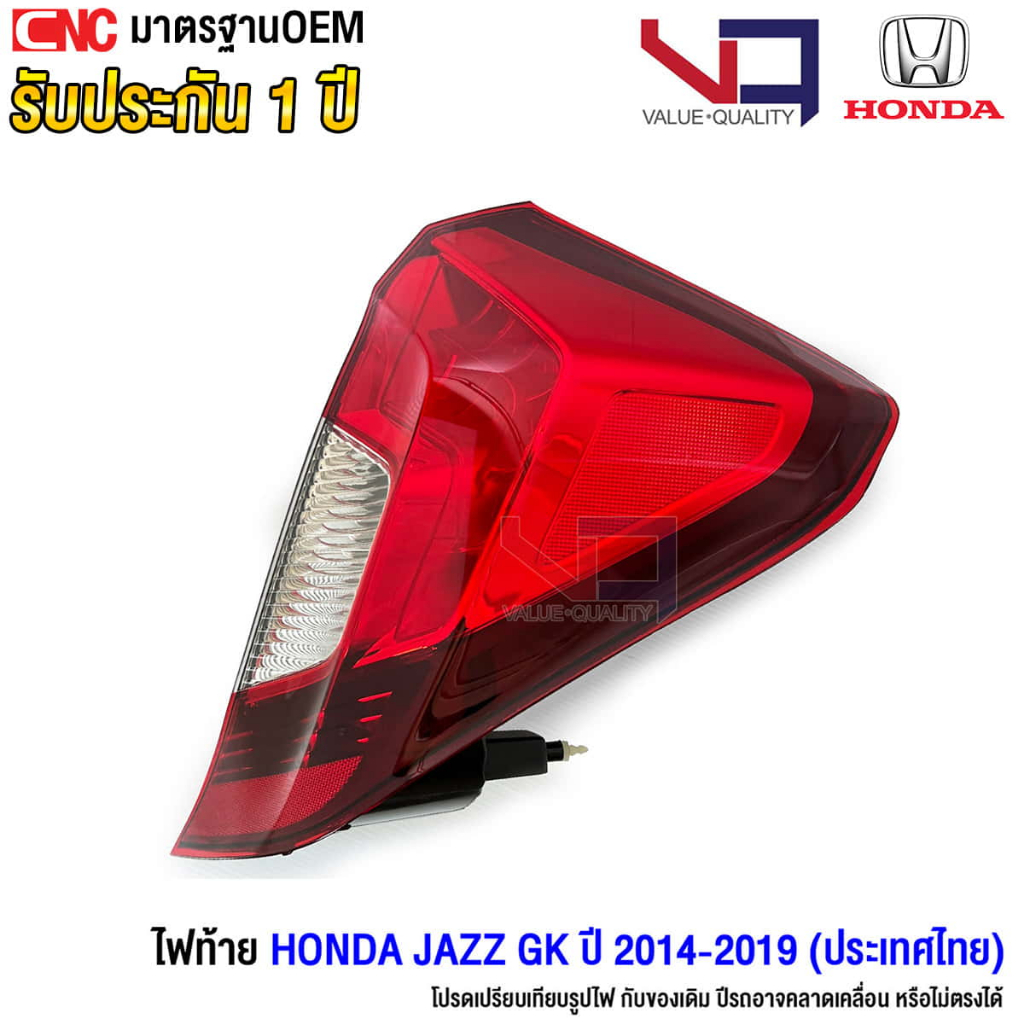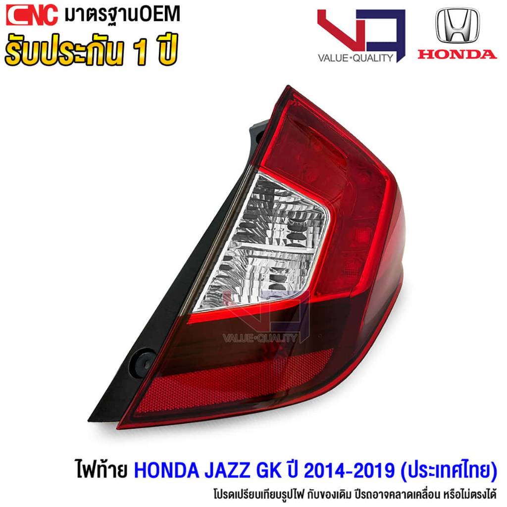 VQ ไฟท้าย HONDA JAZZ GK ปี 2014 2015 2016 2017 2018 2019 สีเหมือนเดิม ตรงรุ่น รับประกัน 1ปี ข้างซ้าย / ข้างขวา / 1คู่