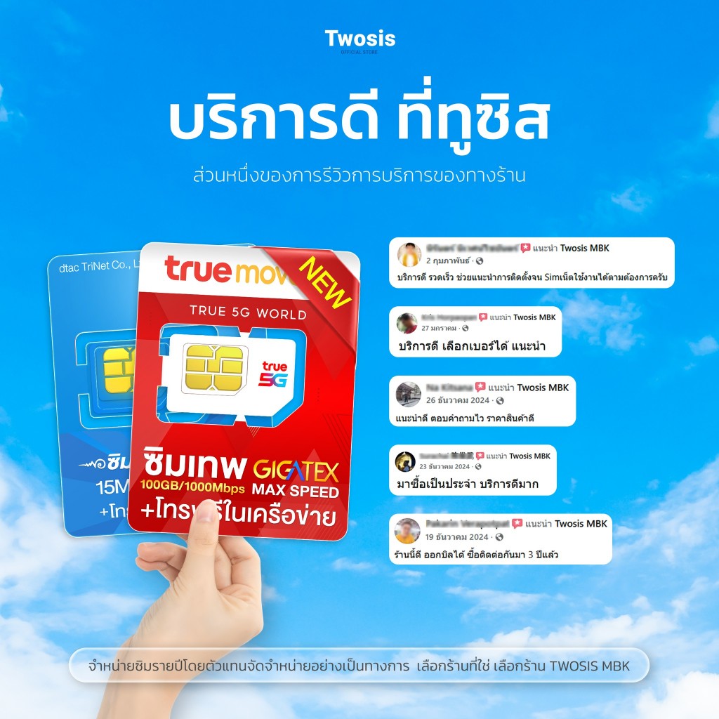 โปรเด็ดลดแรง รวมซิมเน็ตรายปี TRUE DTAC โทรฟรีทุกเครือข่ายใช้ได้ยาวๆ 12 เดือน ส่งเร็ว ส่งฟรี ออกใบกำกับภาษีได้ TWOSISMBK