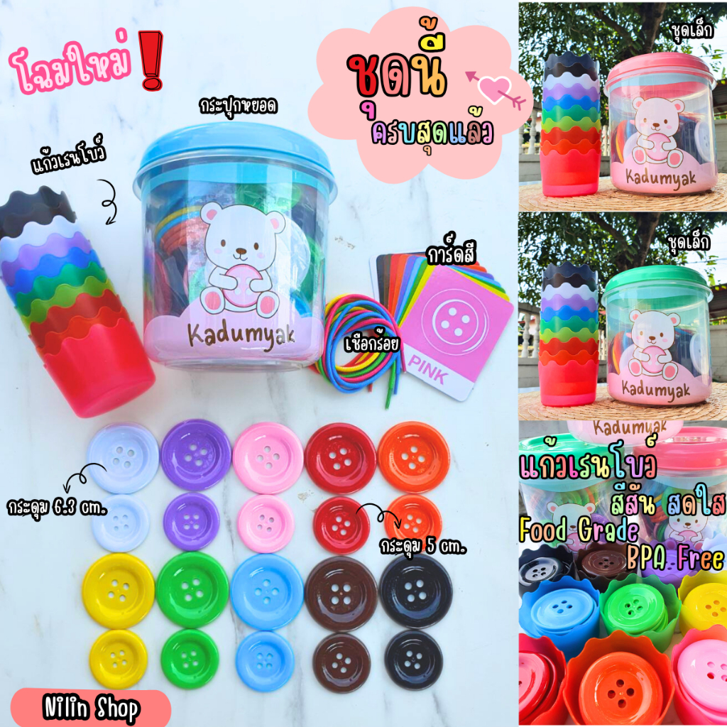 ครบสุด กระดุมยักษ์ 2 ขนาดสีสด+แก้ว10ใบ+กระปุกหยอด+การ์ดสี+เชือก คุ้มKadumYak Rainbow Cup กระดุมยักษ์
