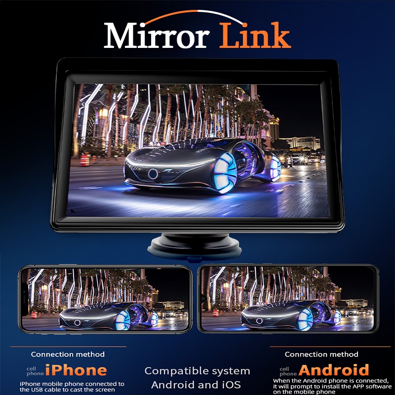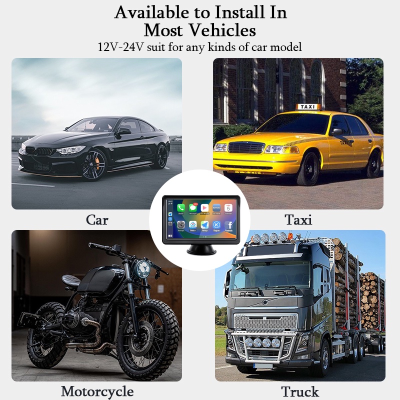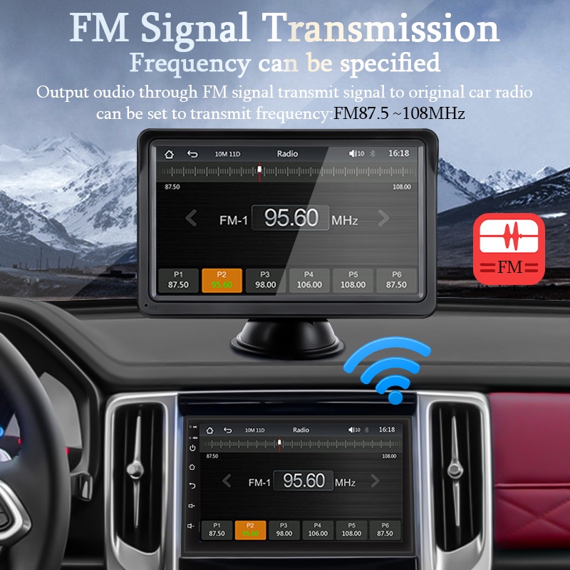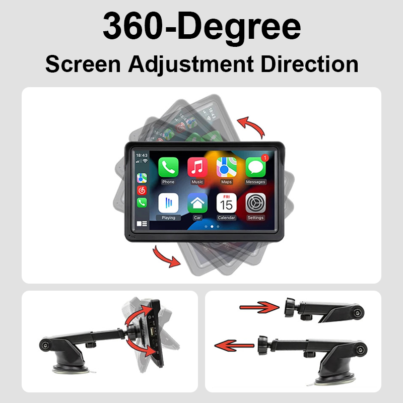 Carplay Android Auto รถวิทยุเครื่องเล่นวิดีโอมัลติมีเดีย 7 นิ้วหน้าจอสัมผัสแบบพกพา USB AUX สําหรับกล้องมองหลัง