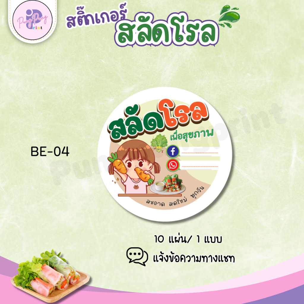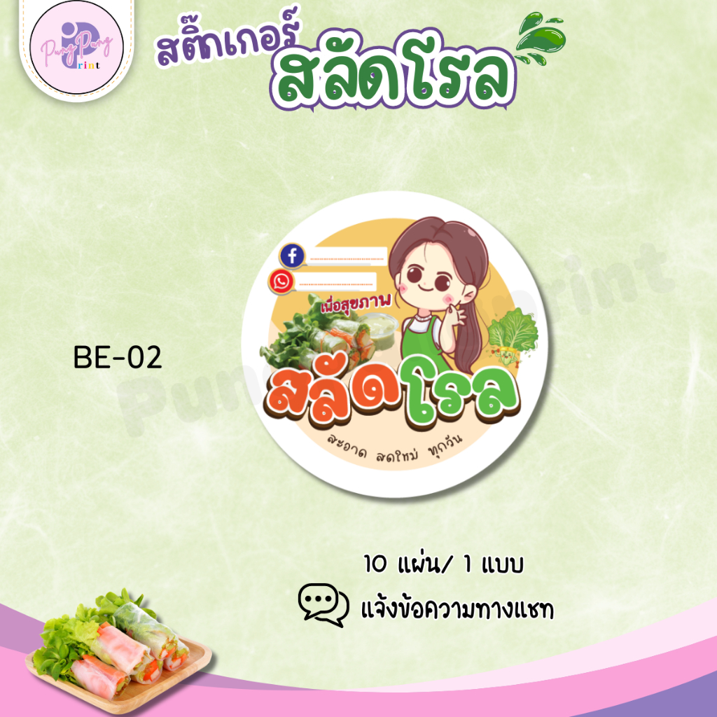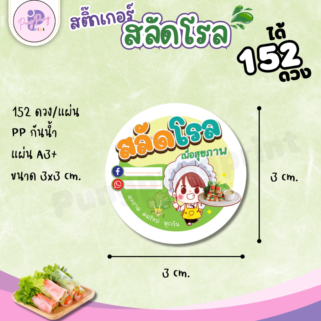 (เพิ่มชื่อร้าน 10 แผ่นขึ้นไป) สติ๊กเกอร์สลัดโรล สลัดผักเพื่อสุขภาพ กันน้ำ ไดคัทฟรี (ได้ 152 ดวง) PPP056-PP
