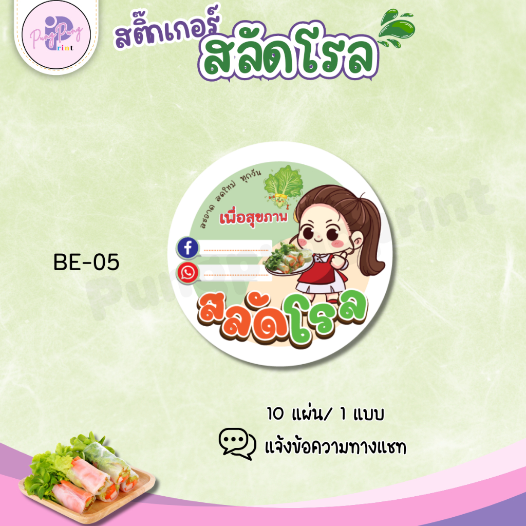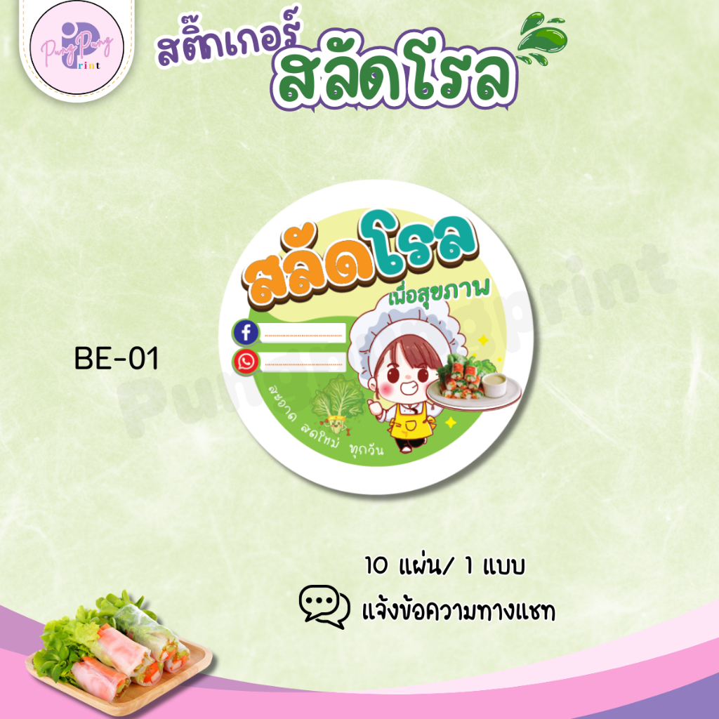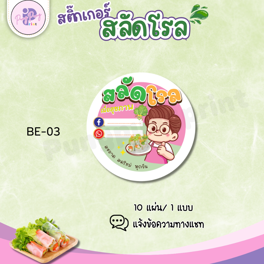 (เพิ่มชื่อร้าน 10 แผ่นขึ้นไป) สติ๊กเกอร์สลัดโรล สลัดผักเพื่อสุขภาพ กันน้ำ ไดคัทฟรี (ได้ 152 ดวง) PPP056-PP