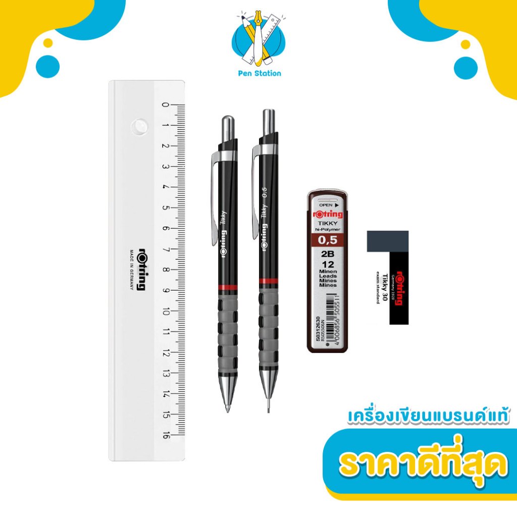 rOtring Tikky Smart Set ชุดปากกาลูกลื่น ดินสอกด ยางลบ ไส้ดินสอ ไม้บรรทัด