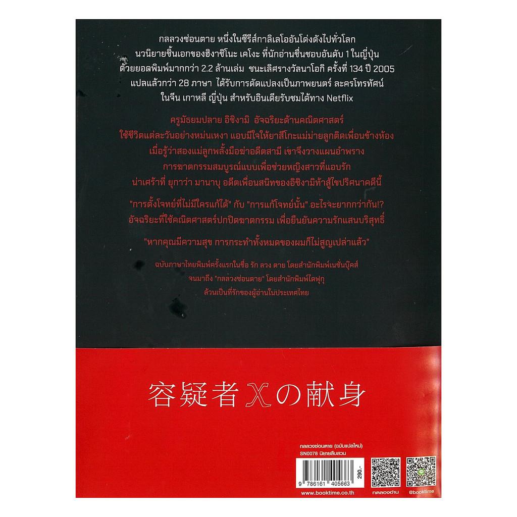 กลลวงซ่อนตาย หนึ่งในซีรีส์กาลิเลโออันโด่งดังไปทั่วโลก นวนิยายชิ้นเอกของฮิงาชิโนะ เคโงะ ที่นักอ่านชื่นชอบอันดับ 1 ในญี่ปุ่น ด้วยยอดพิมพ์มากกว่า 2.2 ล้านเล่ม ชนะเลิศรางวัลนาโอกิ ครั้งที่ 134 ปี 2005 แปลแล้วกว่า 28 ภาษา ได้รับการดัดแปลงเป็นภาพยนตร์ ละครโทร
