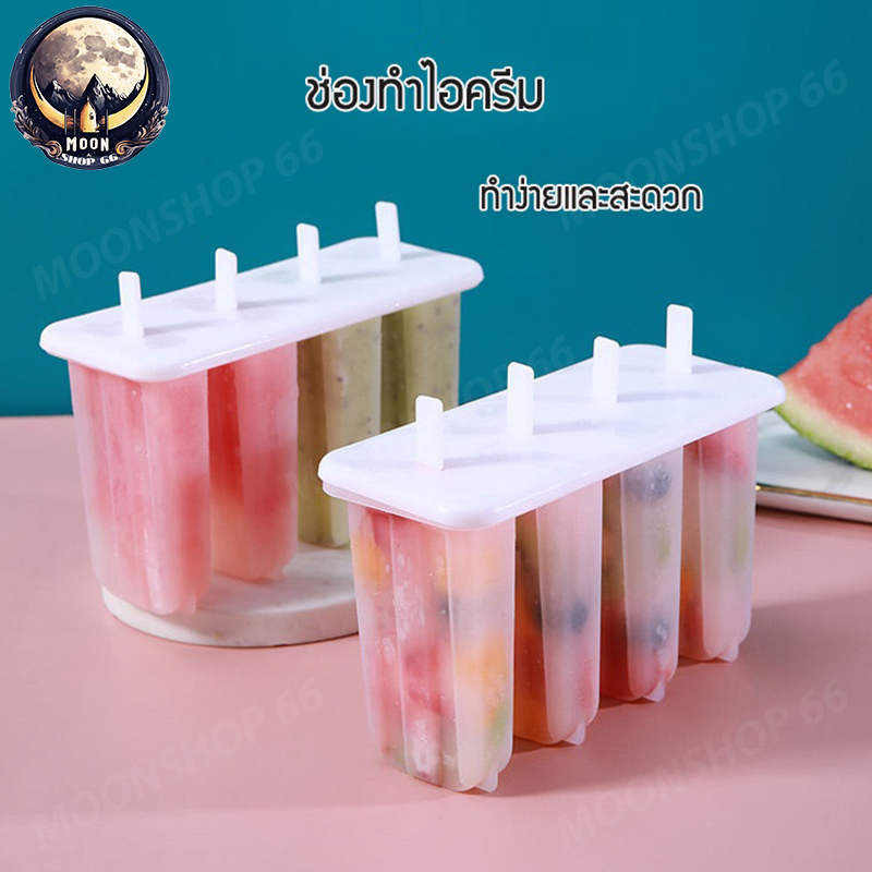 ทำไอศครีม ไอติมแม่พิมพ์ พิมพ์ไอติม 4 แท่ง พิมพ์ไอศครีม ทำไอติม ที่ทำไอติม DIY แม่พิมพ์น้ำแข็ง แม่พิมพ์ไอติมแท่ง