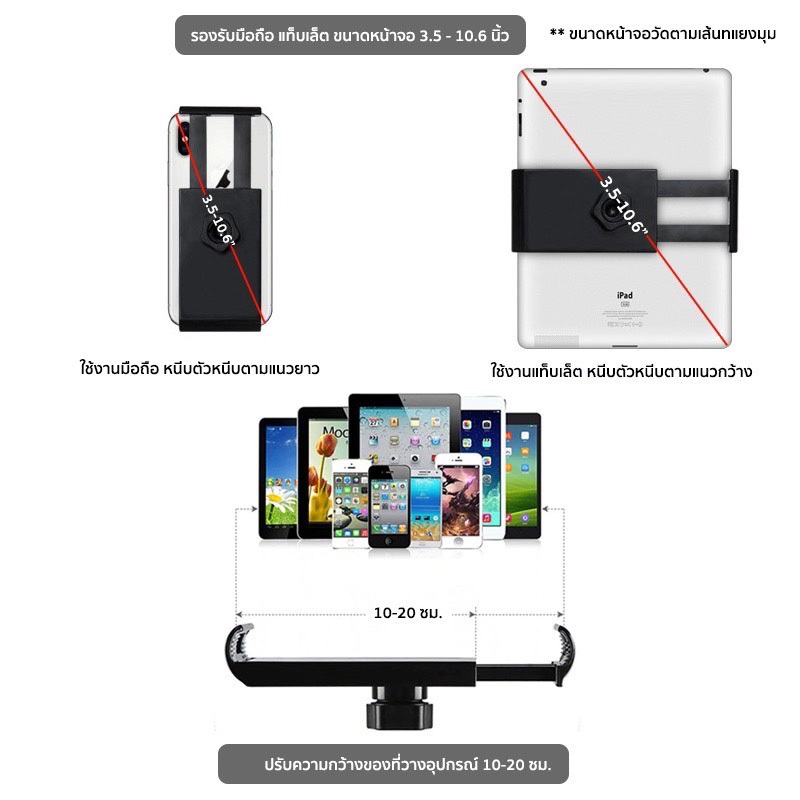 หัวยึดได้12-18cm‼️หัวหนีบได้ถึงเครื่องไอแพดทีเป็นยืดได้ 11นิ้ว❌