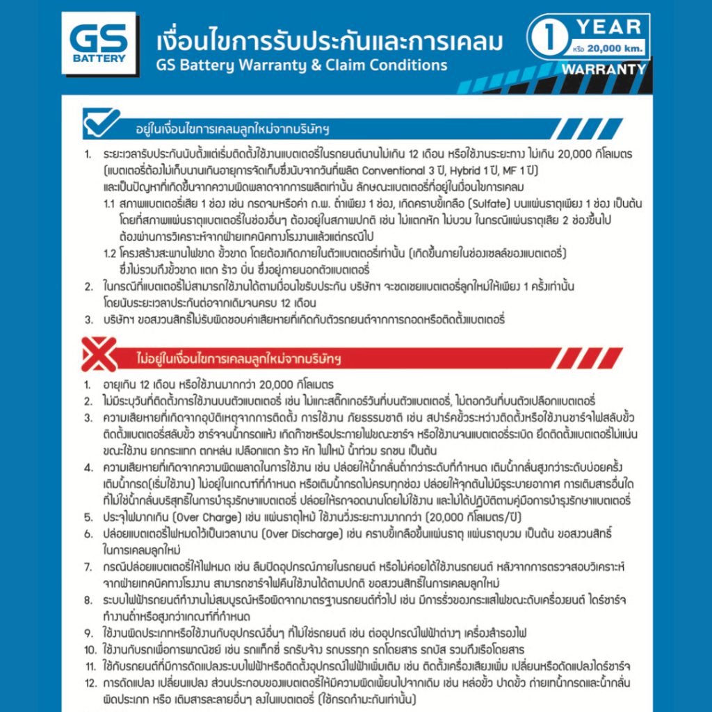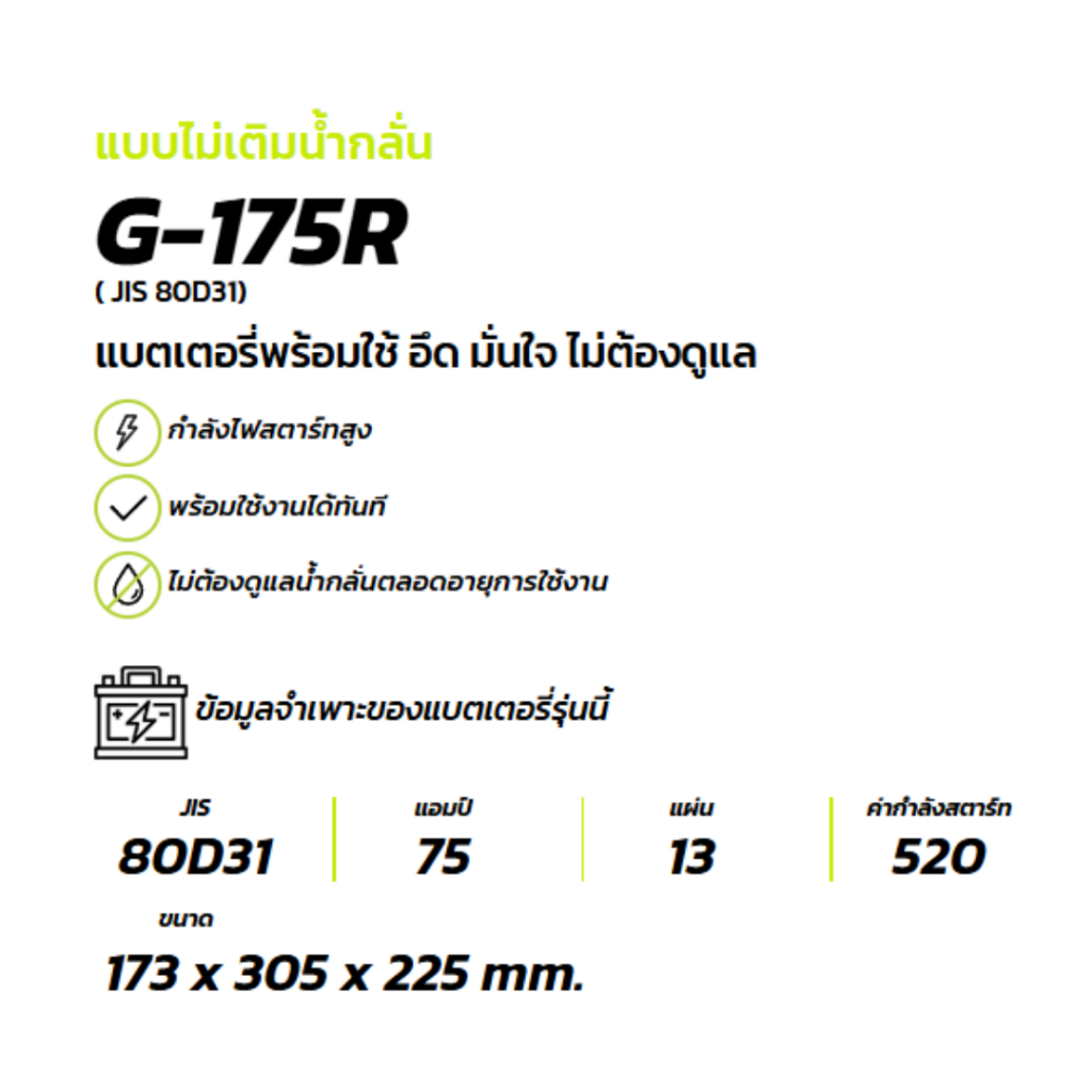 (ส่งด่วน) แบตเตอรี่รถยนต์ GS G175R (85D31) 75Ah | เหมาะกับ TFR / Dragon Eye | รับประกัน 1 ปี