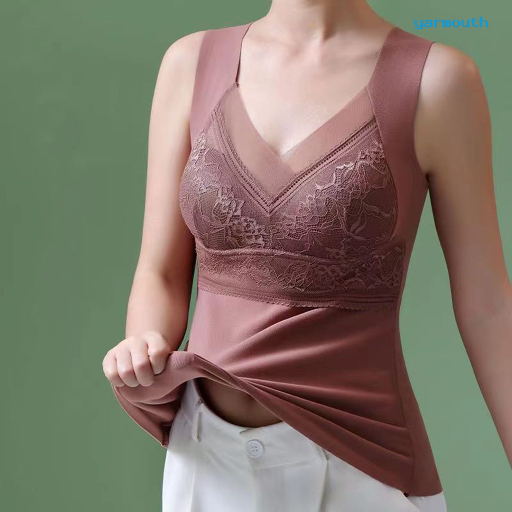Yyr– ผู้หญิง อบอุ่น ชุดชั้นใน เสื้อกั๊ก เซ็กซี่ แขนกุด ด้านล่าง เสื้อ คอวี ชุดชั้นใน พร้อมแผ่นอก บาง ไร้รอยต่อ เสื้อชั้นในสตรี สวมใส่ด้านใน ลูกไม้ ยกทรง