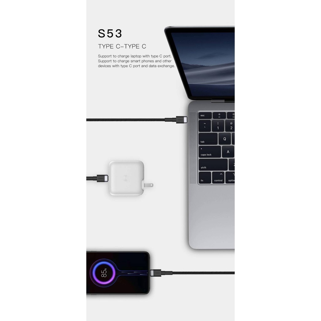 ORSEN byEloop S53 สายชาร์จแบบเร็ว QC4.0+PD Eloop S53 Type-C To Type-C ของแท้100%