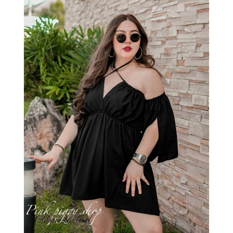 ✅เข้าเพิ่ม พร้อมส่งค่า/PP/มินิเดรสสาวอวบ ต่อแขน เชือกผูกคล้องคอ #เซ็กซี่เบาๆ