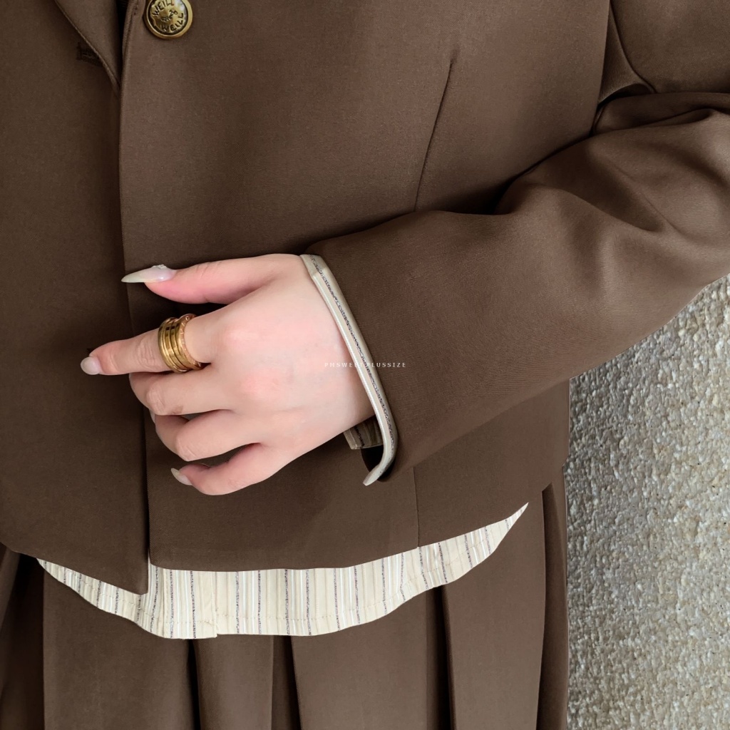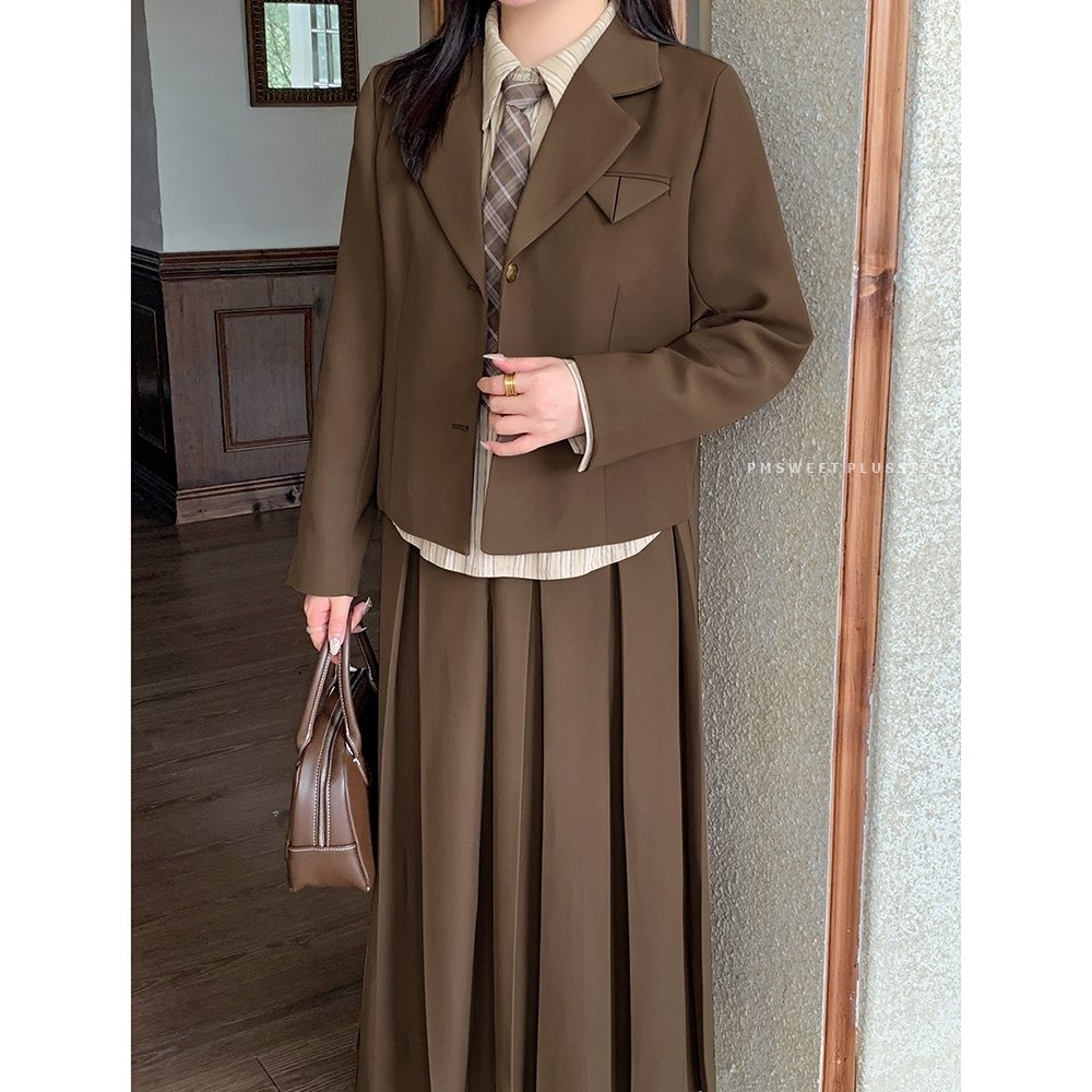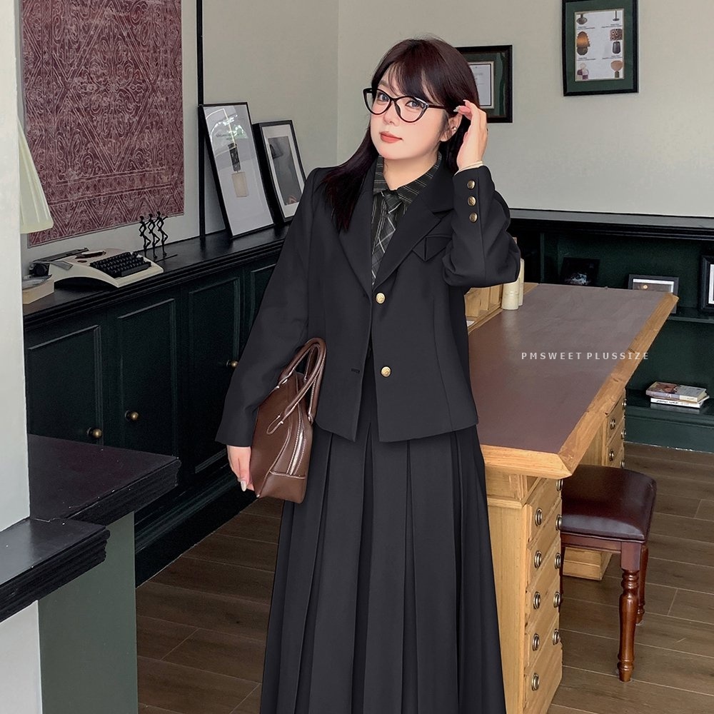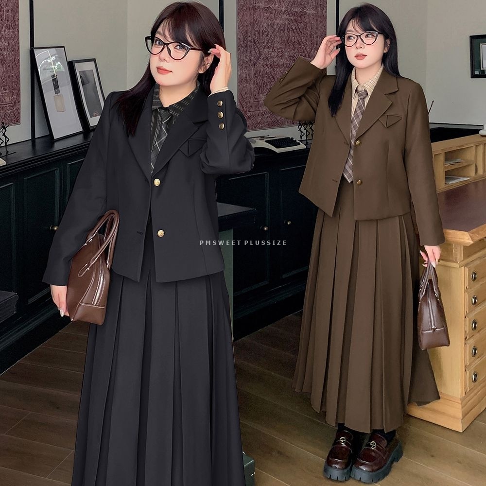 [ ?อกถึง 54″ ] : PMP2391 : พรีออเดอร์ ชุดสูทสไตล์นักเรียน ชุดกระโปรงจับจีบสำหรับผู้หญิงไซส์ใหญ่