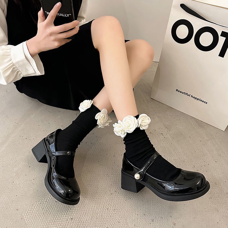 ?ส่งใน24ชม?รองเท้าส้นสูงสไตล์ฝรั่งเศส รองเท้าส้นสูงสีขาว สไตล์ย้อนยุค เรียบหรู ทันสมัย