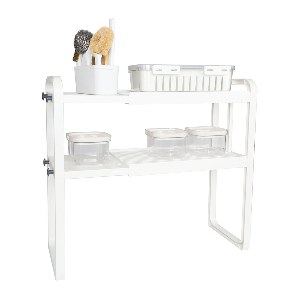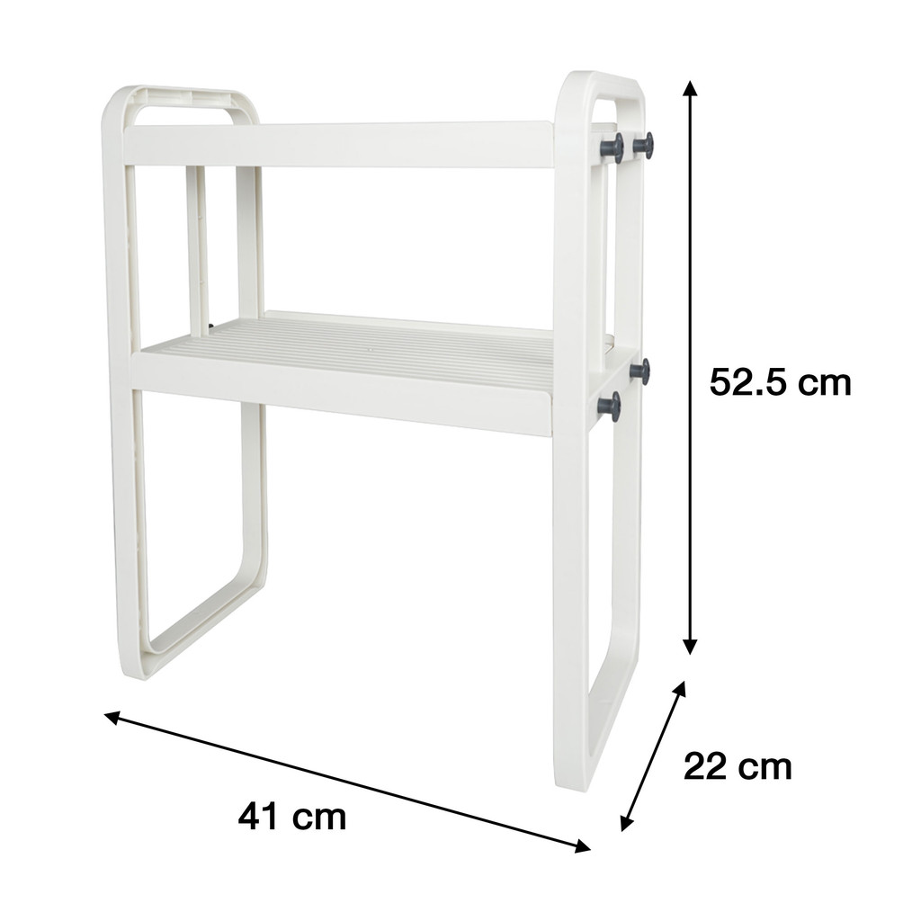 KASSA HOME ชั้นวางของพลาสติก 2 ชั้น แบบยืดหดได้ รุ่น H-8512-2 ขนาด 41 x 22 x 52.5 ซม. สีขาว