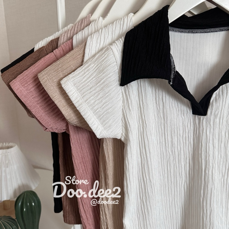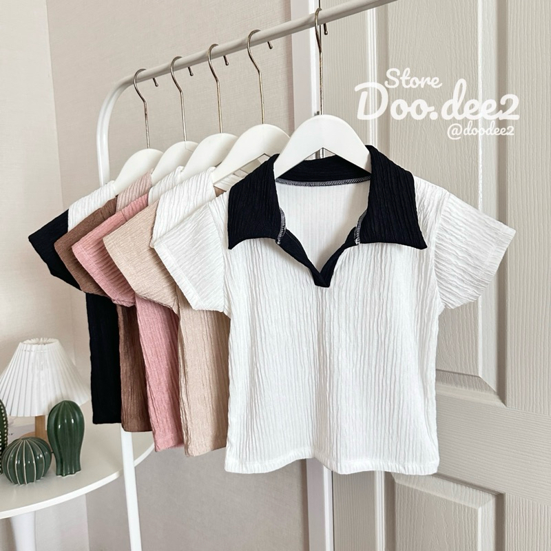 ♦️DOODEE2♦️เสื้อคอปกแขนสั้นทูโทนผ้าท็อปฟี่