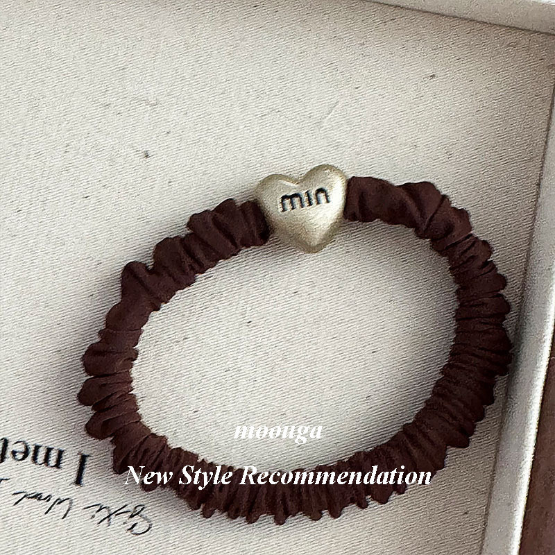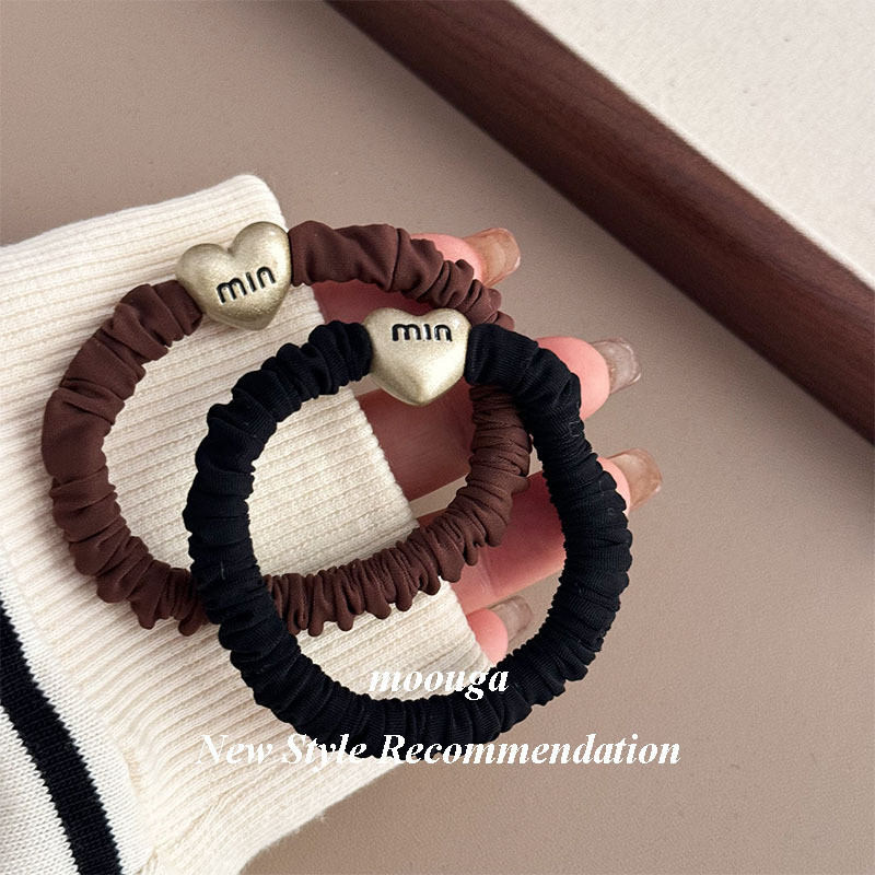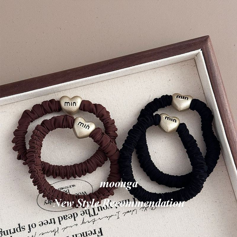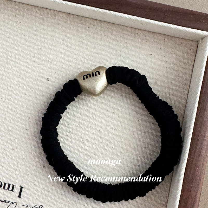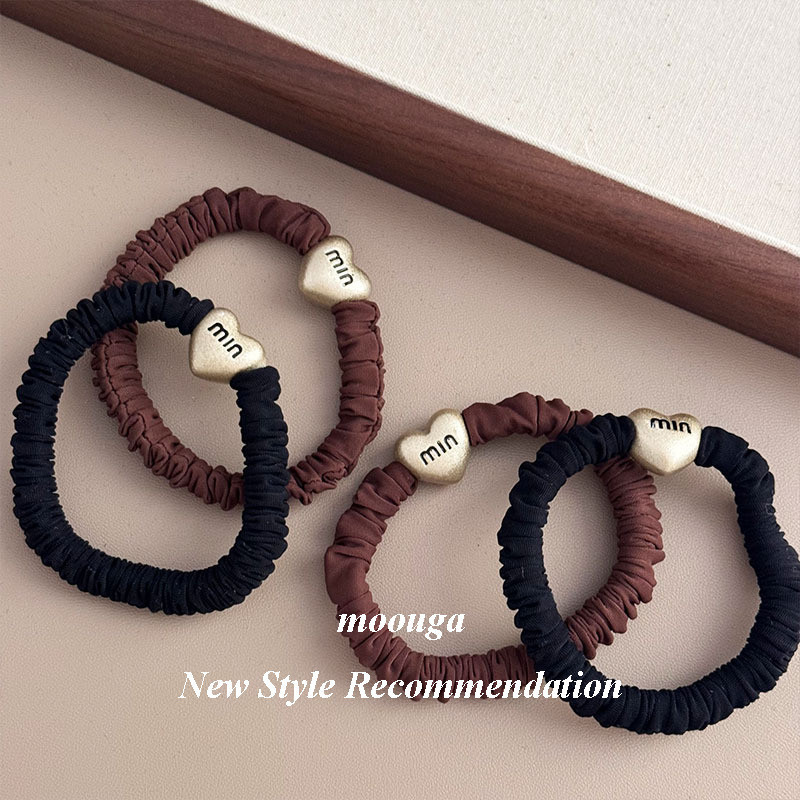 Moouga ยางมัดผมหางม้า โลหะ ยืดหยุ่นสูง พิมพ์ลายตัวอักษร เรียบง่าย สไตล์เกาหลี