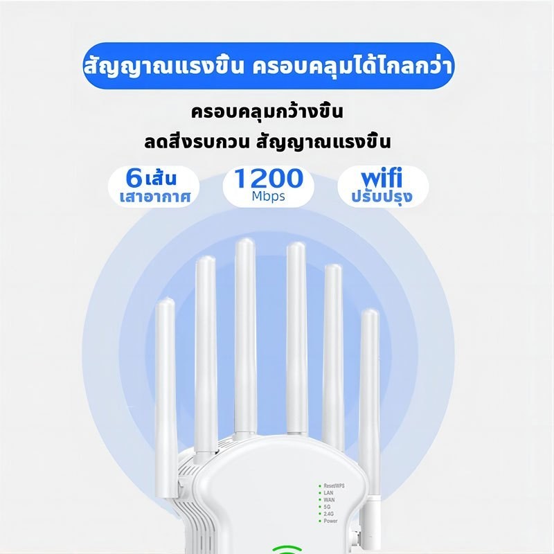 Wifi Repeater ตัวดูดสัญญาณ wifi 2.4Ghz/5GHz 6 เสาอากาศขยาย 1200bps ครอบคลุมสัญญาณ1000㎡ ตัวกระจายไวไฟ ตัวดึงสัญญาณ