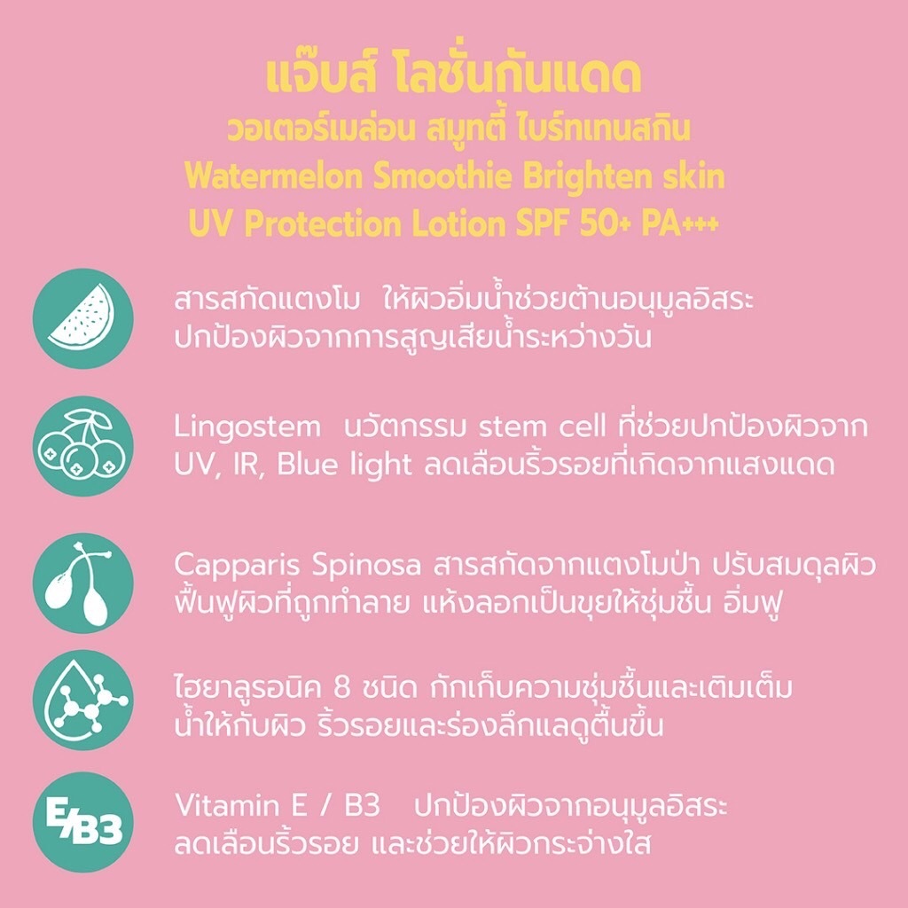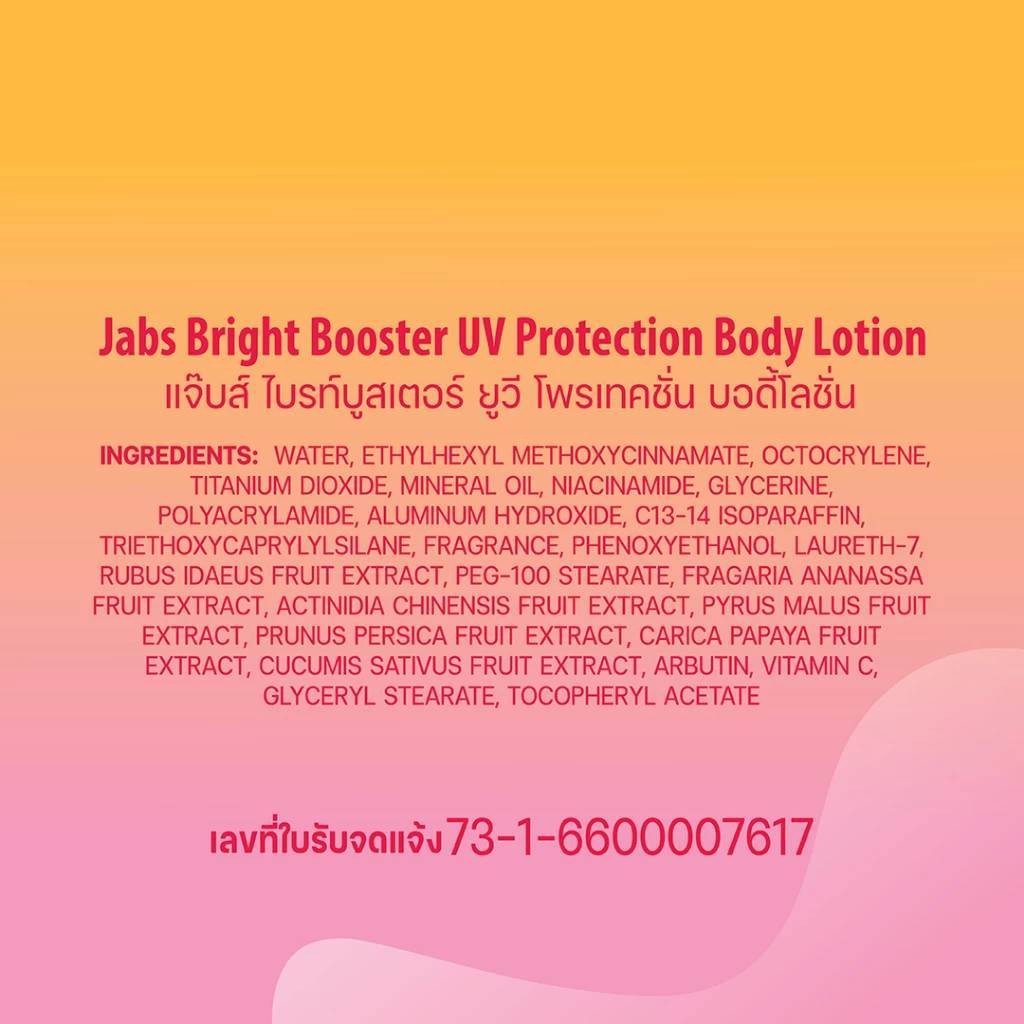 Jabs Bright Booster UV Body/Watermelon Brighten/Bright Booster Water UV Lotion SPF50+ PA+++ 30ml.แจ๊บส์โลชั่น