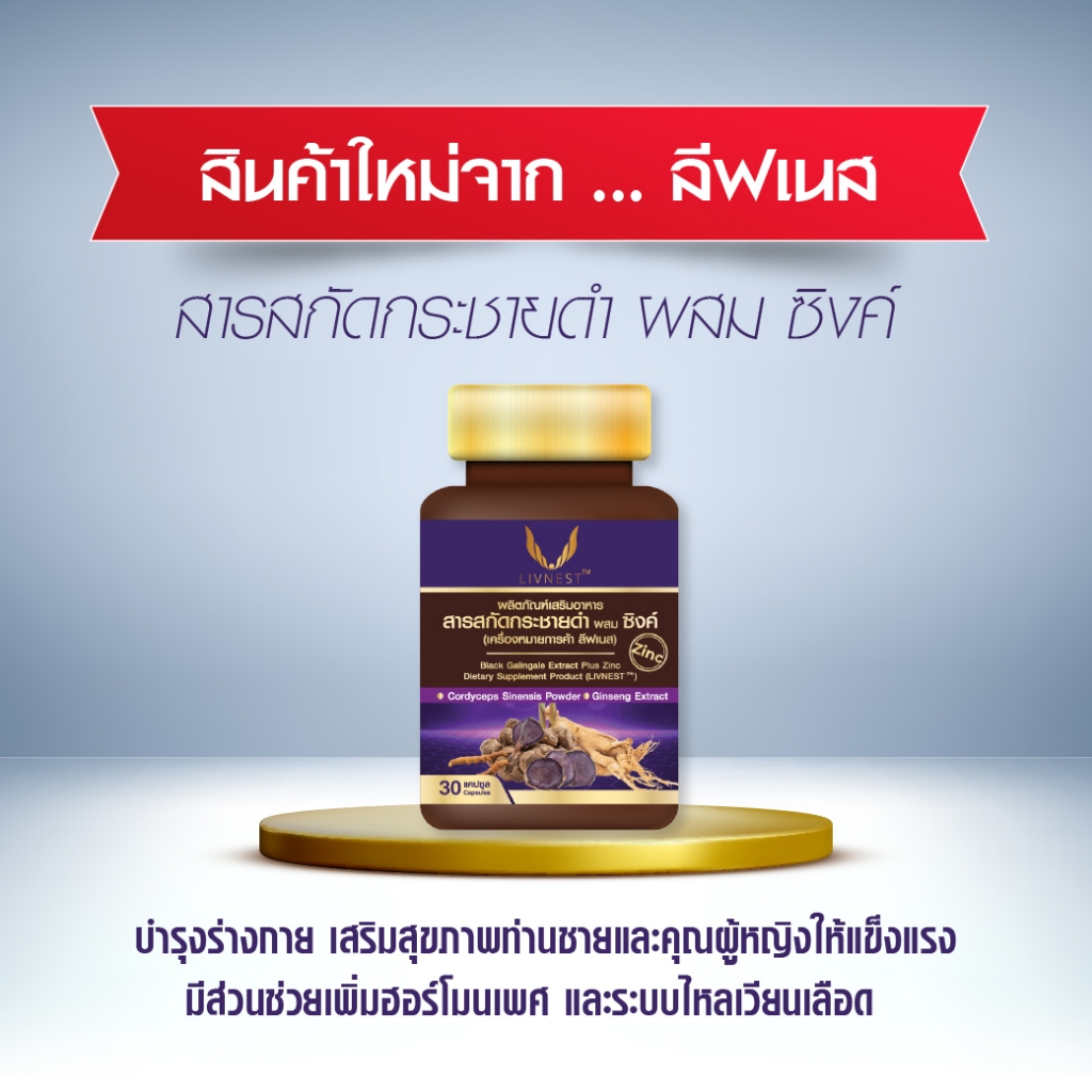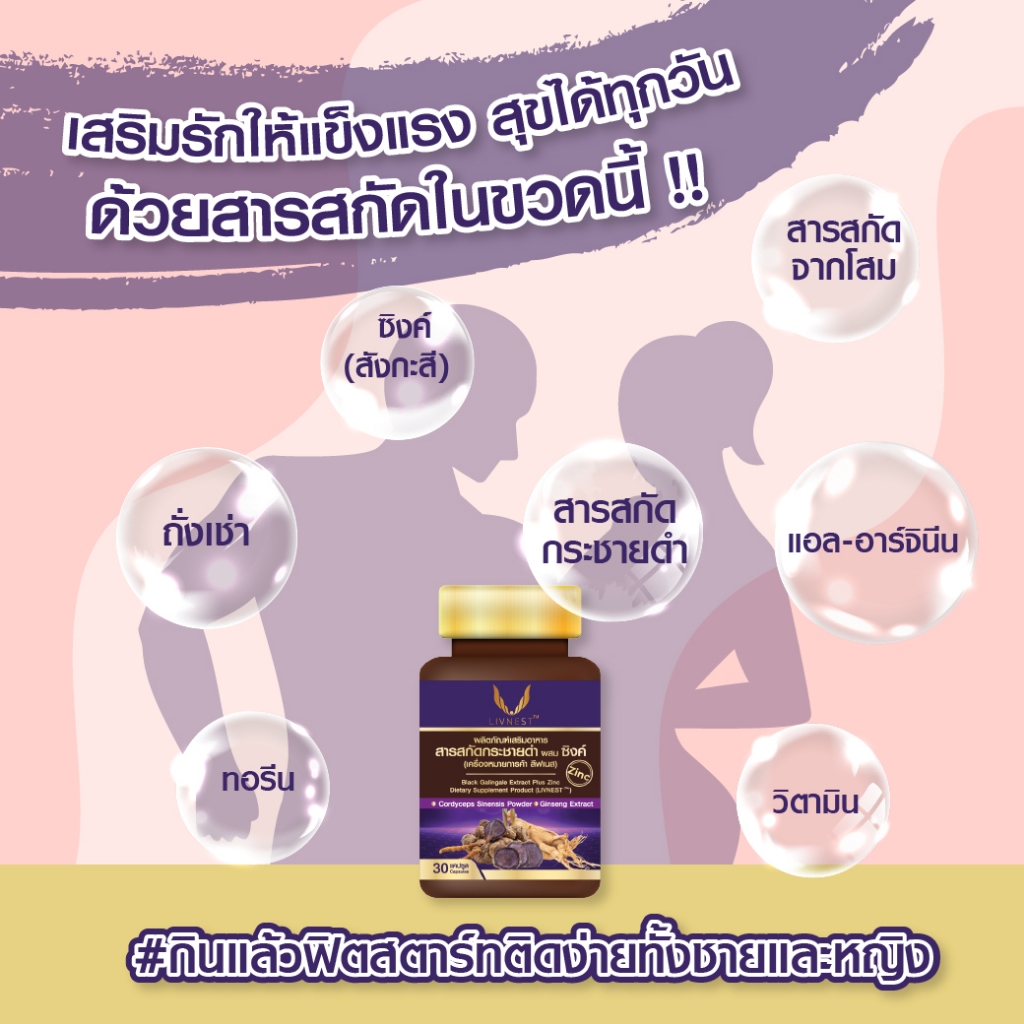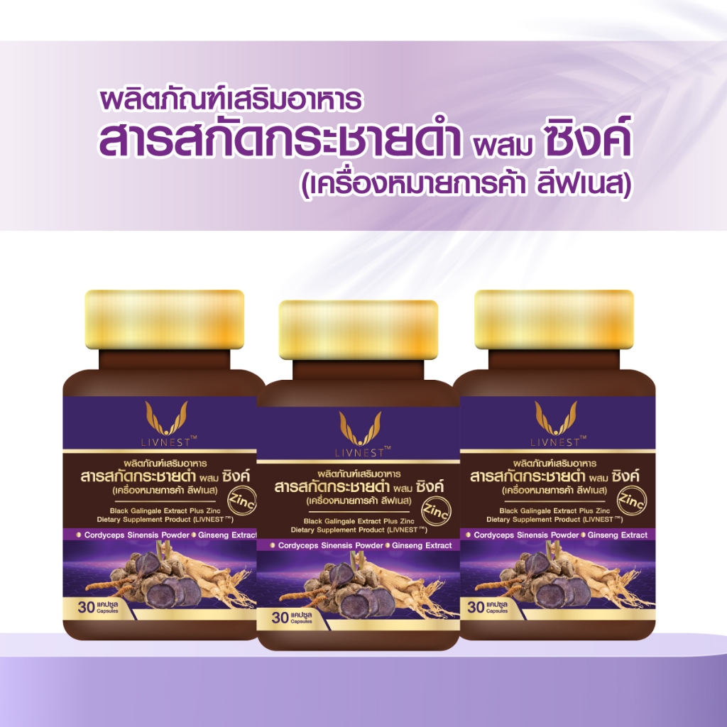 Livnest สารสกัดกระชายดำผสมซิงค์ 30แคปซูล 3ขวด