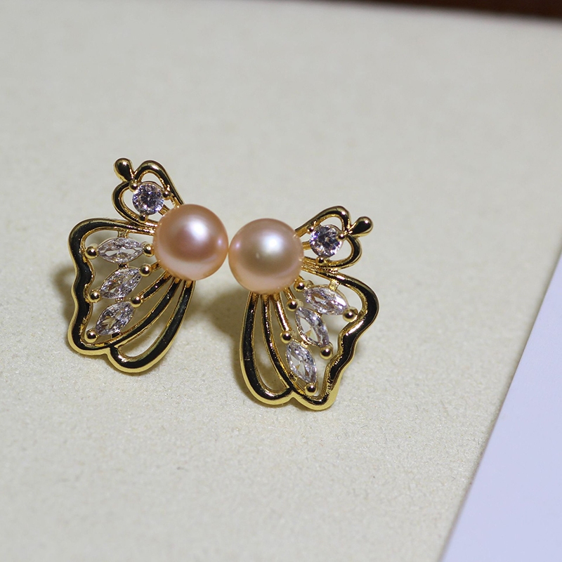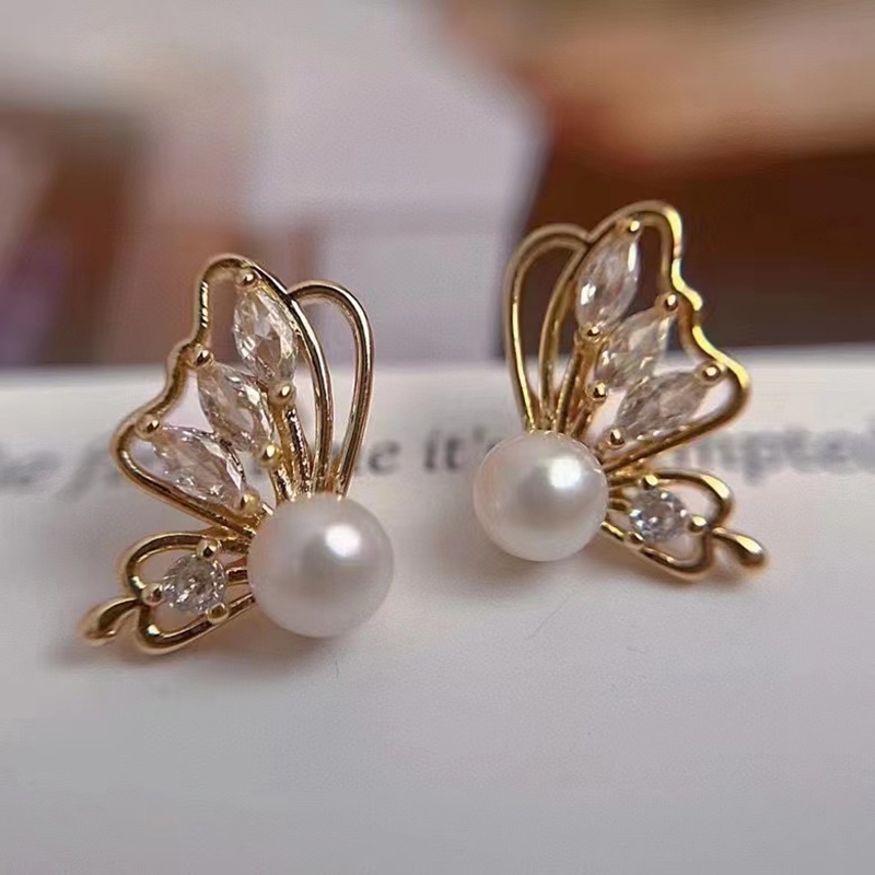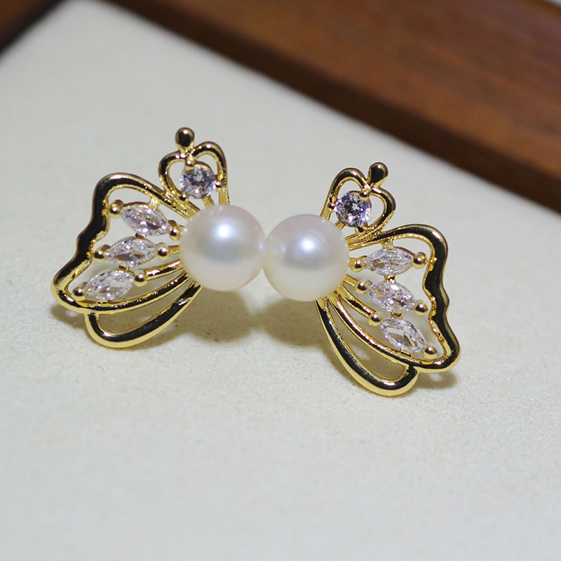 ต่างหูเงิน S925 รูปผีเสื้อ ประดับมุกน้ําจืดธรรมชาติ