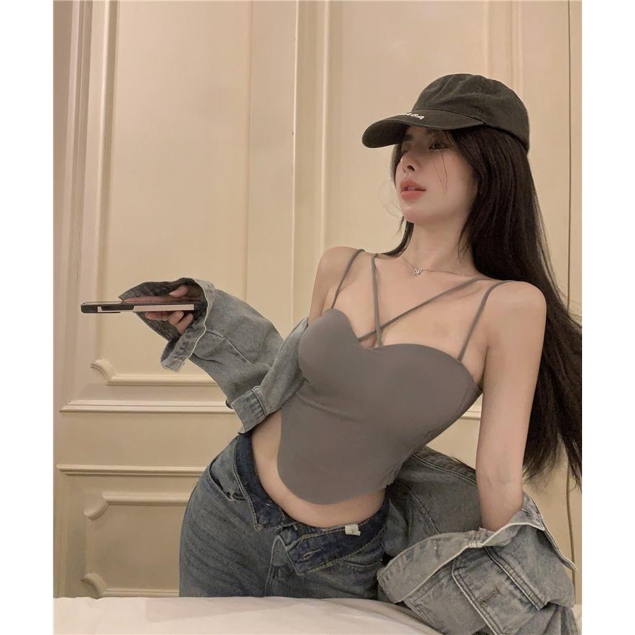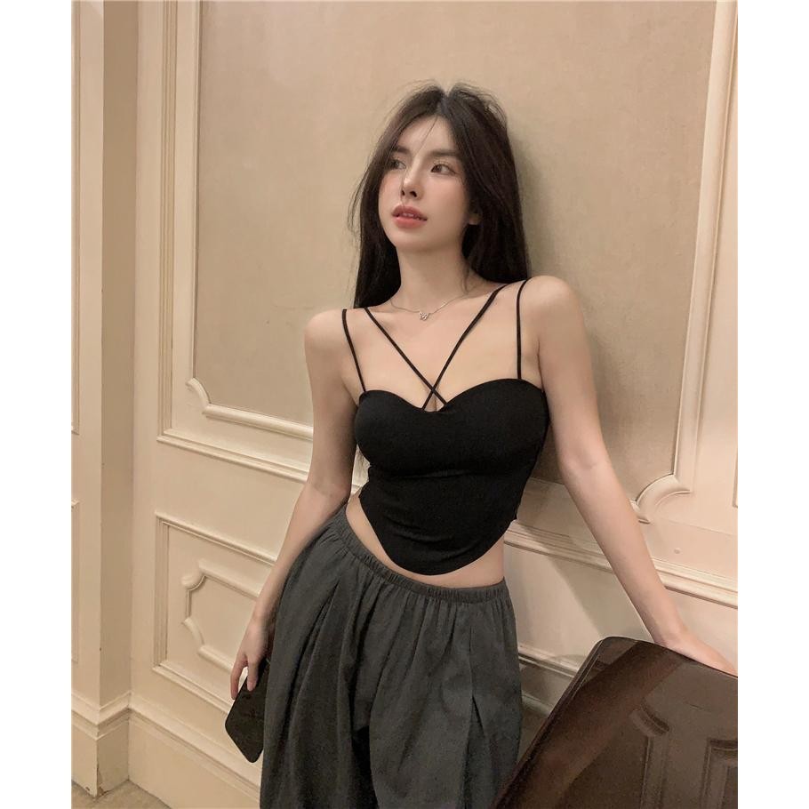 KOKO X5581❤️เสื้อสายเดี่ยวครอปแขนกุด สปอร์ตบรา เสื้อกั๊กสายไขว้เซ็กซี่พร้อมสลิงโค้งสไตล์เซ็กซี่สำหรับผู้หญิง