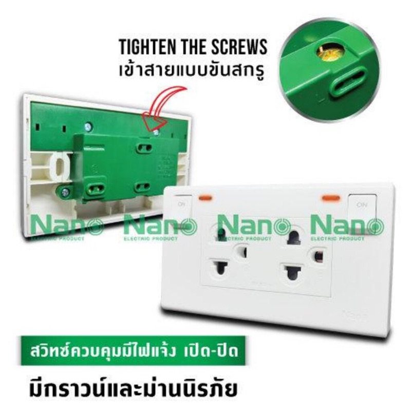 NANO ปลั๊กกราวคู่ มีม่านนิรภัย+สวิทซ์ควบคุมแบบมีไฟ SC-SW2P6-W / สีขาว ปลั๊กไฟ