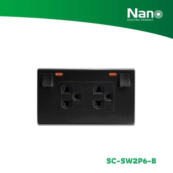 NANO ปลั๊กกราวคู่ มีม่านนิรภัย+สวิทซ์ควบคุมแบบมีไฟ/กล่องลอย SC-SW2P6-W / สีขาว ปลั๊กไฟ