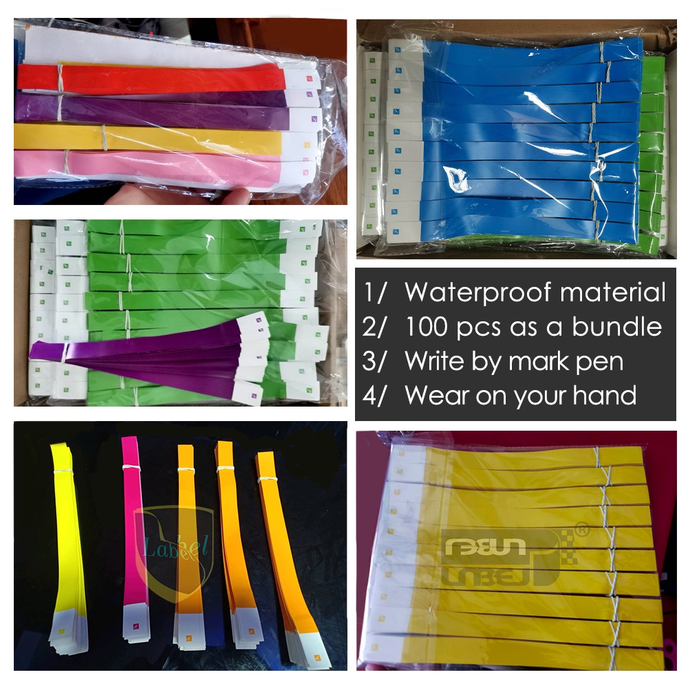 100 ชิ้น สติกเกอร์สายรัดข้อมือกันน้ำ สติกเกอร์ tyvek ข้อมือทิ้ง มือวาดแท็กความบันเทิงปาร์ตี้คอนเสิร์ตสติ๊กเกอร์