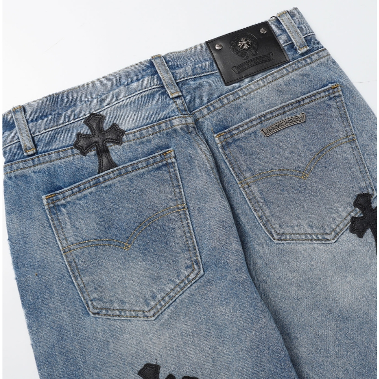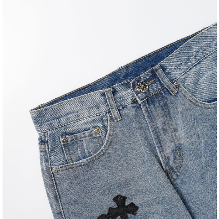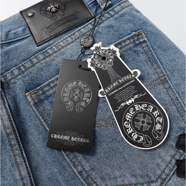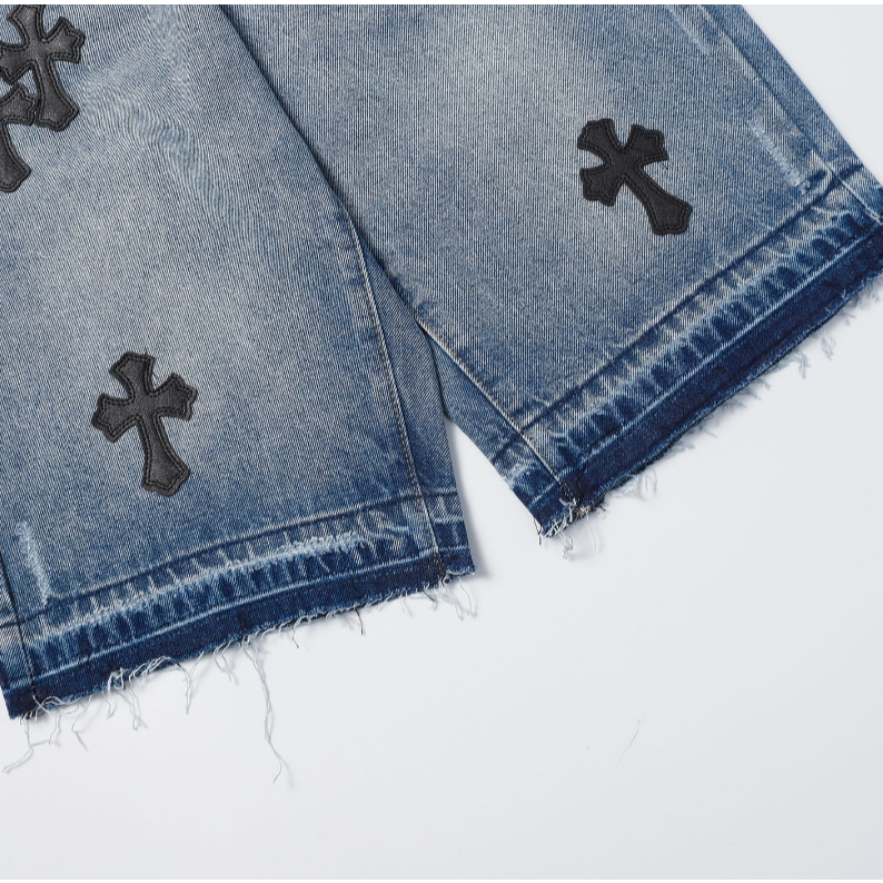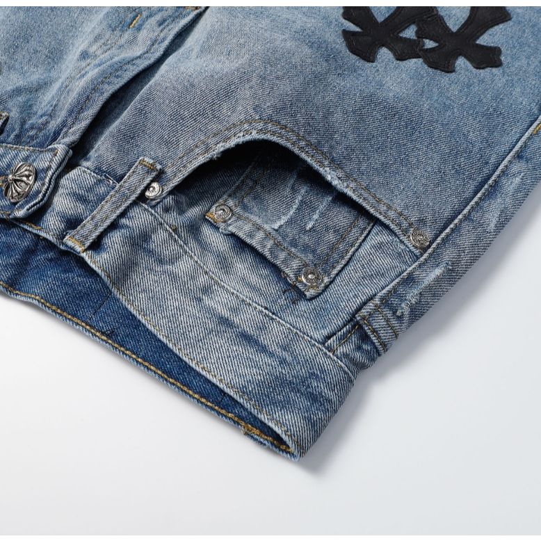 กางเกงยีนขาสั้น ปักลาย สไตล์สตรีท สําหรับผู้ชาย และผู้หญิง