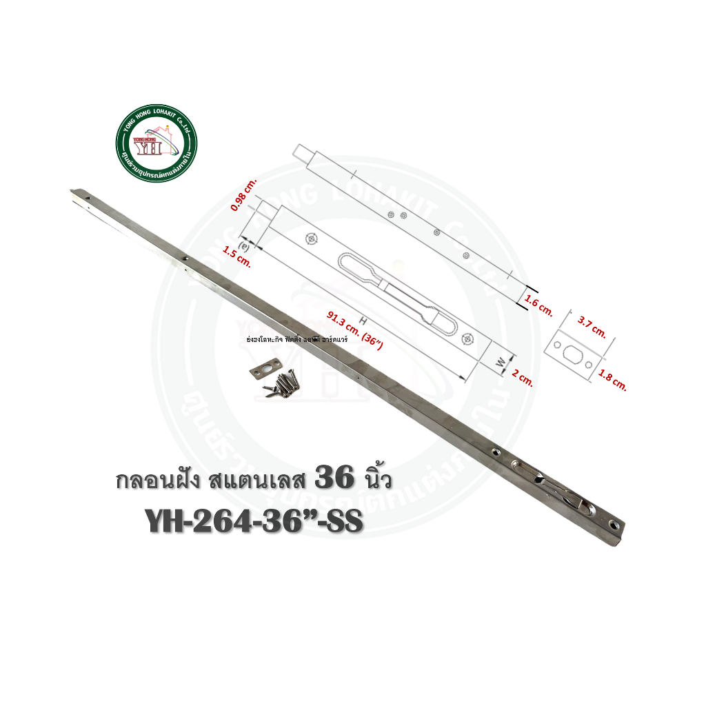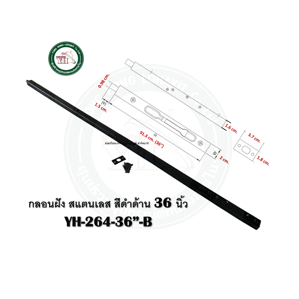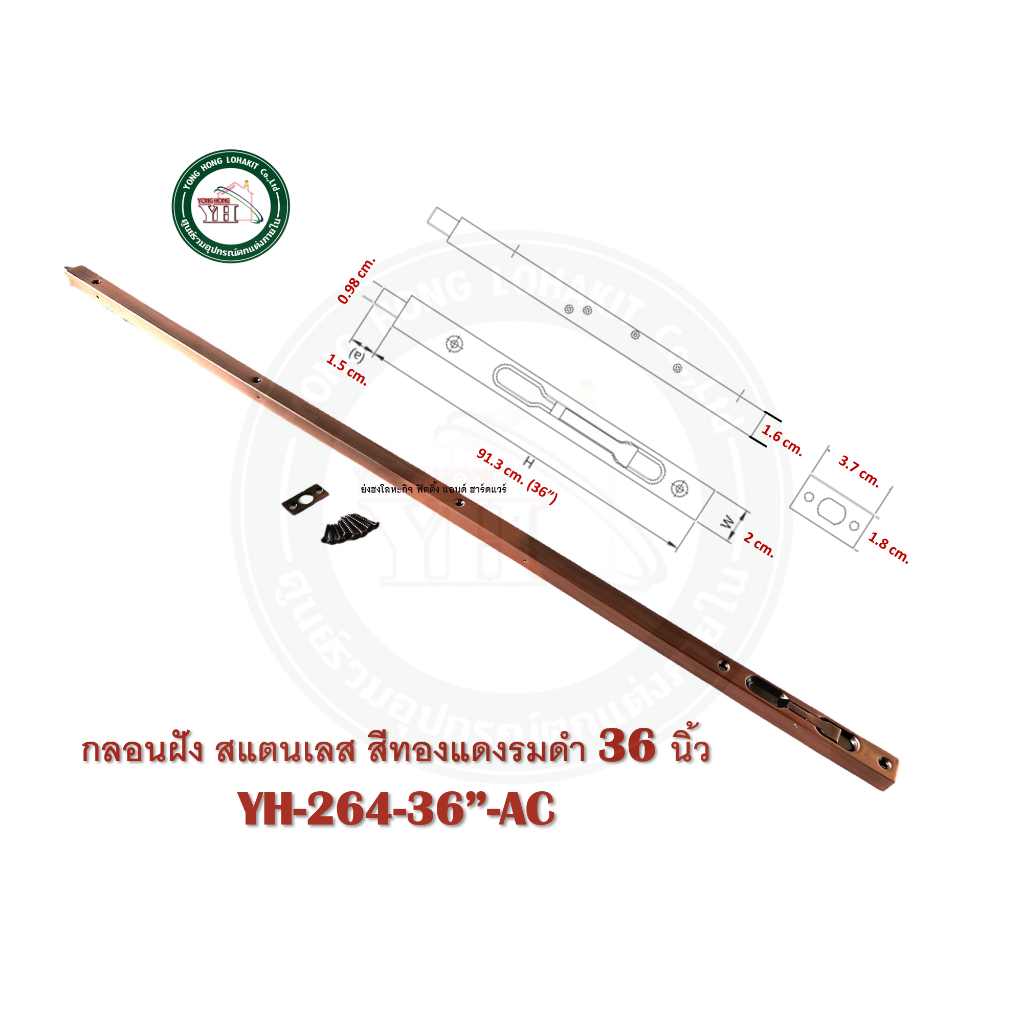 กลอนฝัง กลอนประตู กลอน สแตนเลส มี 3 สี ความยาว 36 นิ้ว รุ่น YH-264-36