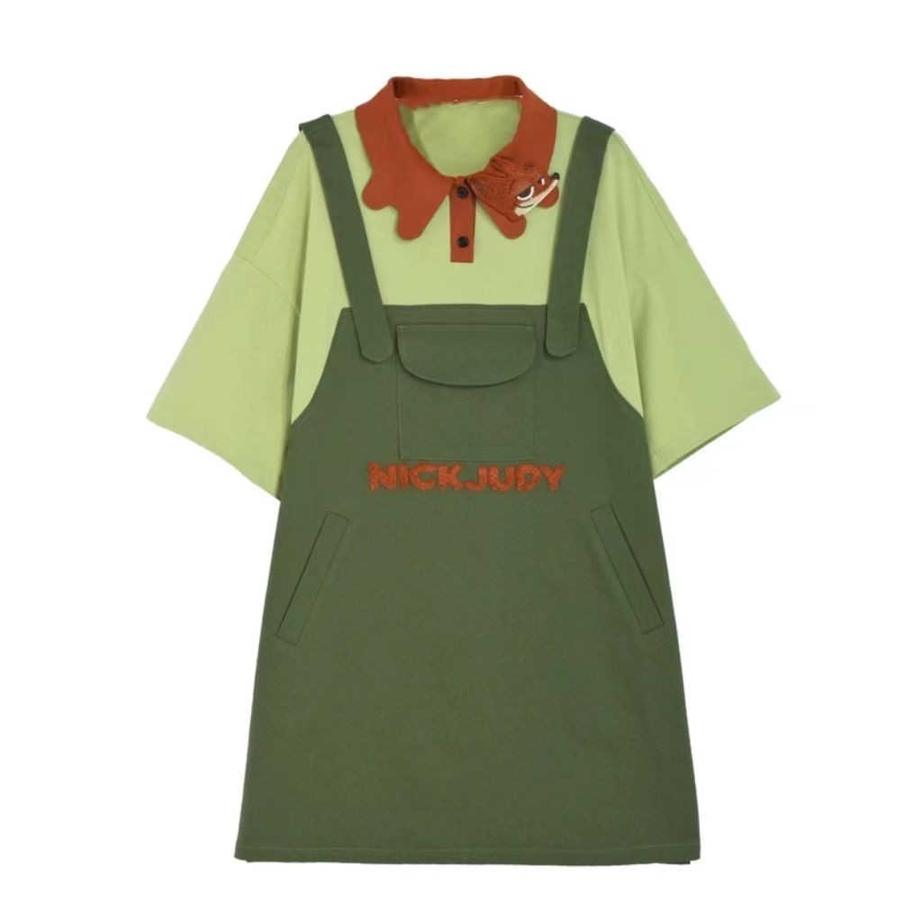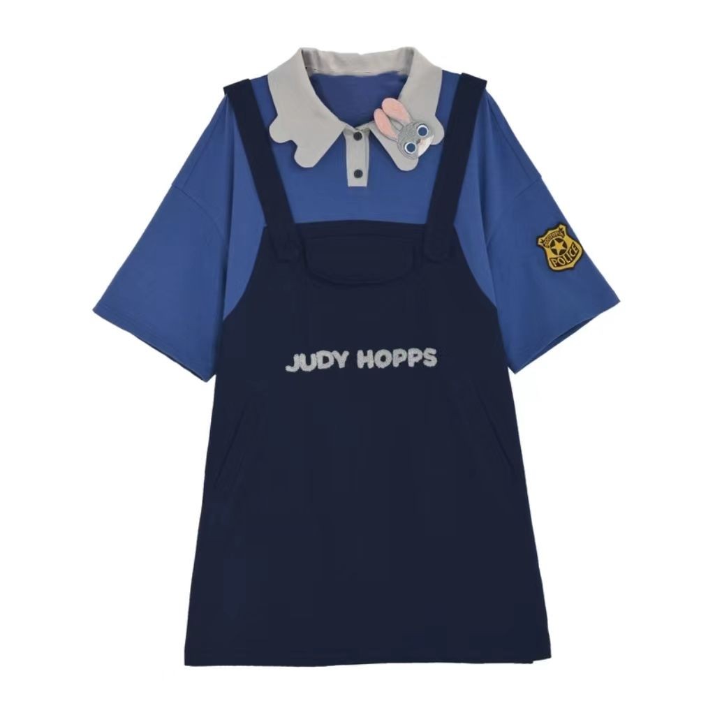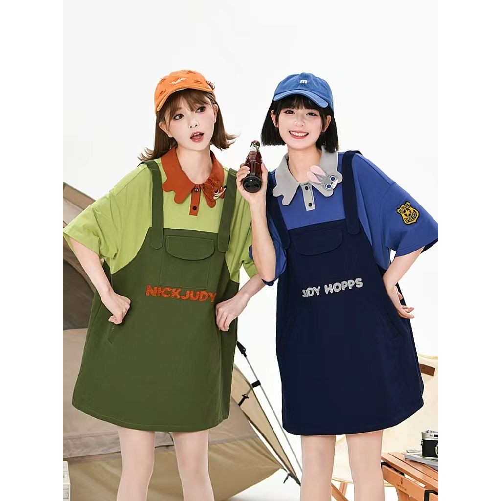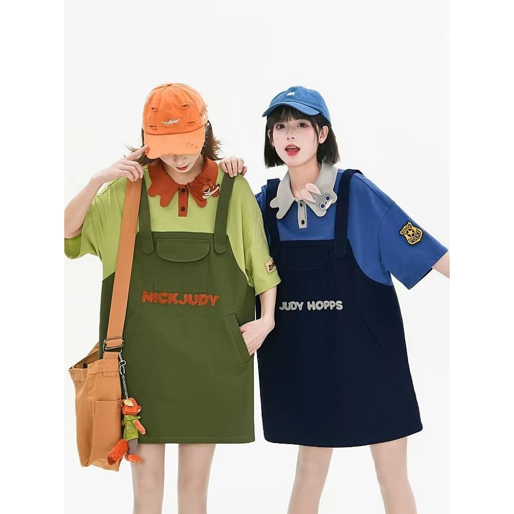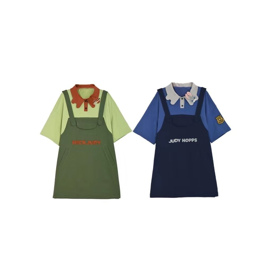[ขายร้อน] Chasing Action Judy Nick Co-Branded ปลอมสองชิ้น POLO เสื้อยืดฤดูร้อนผู้ชายผู้หญิงเสื้อผ้าสไตล์เดียวกัน Original Hot-ขาย Commuter เสื้อผ้าผู้หญิง
