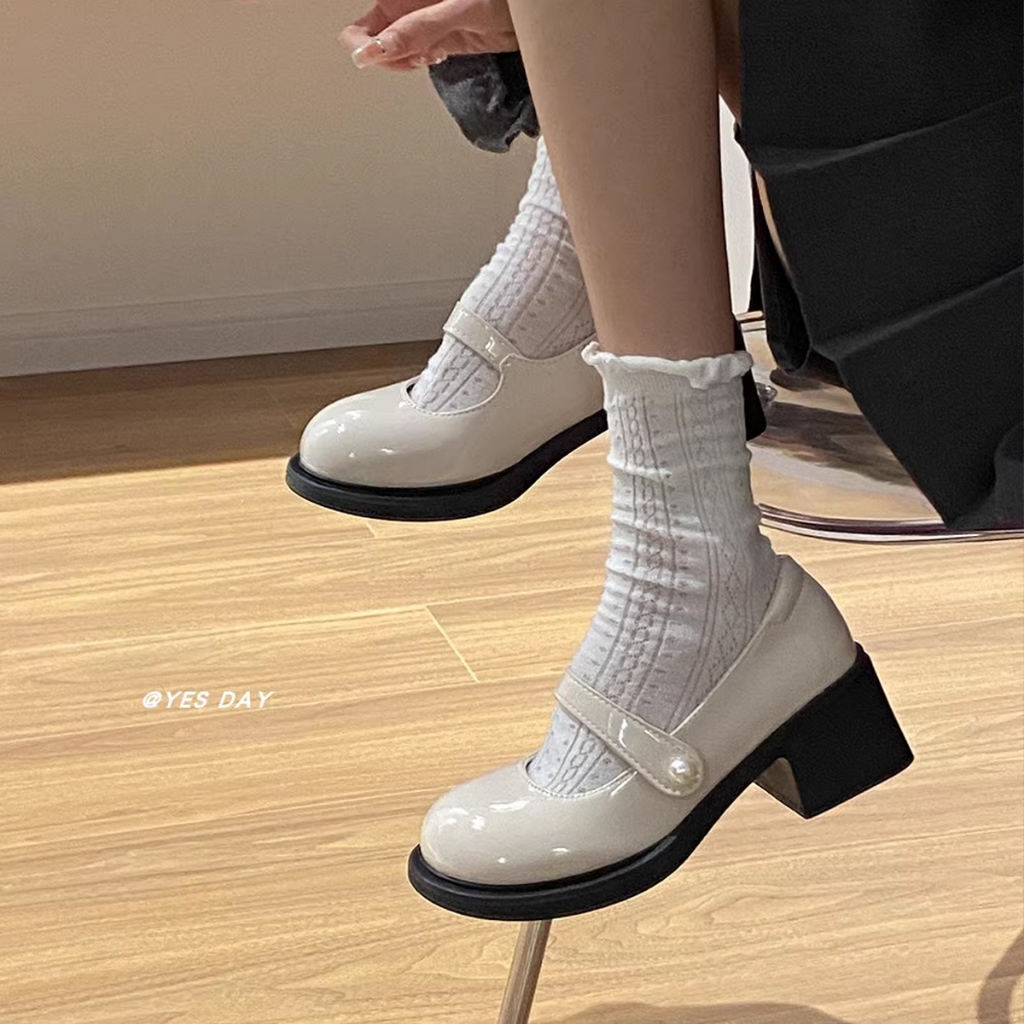 24Hพร้อมส่งในไทย?รองเท้าแมรี่เจนส้นหนาสไตล์เกาหลี รองเท้าส้นเตี้ย สวมใส่สบาย เก๋ ทันสมัย เรียบหรู ไซส์ 35-42