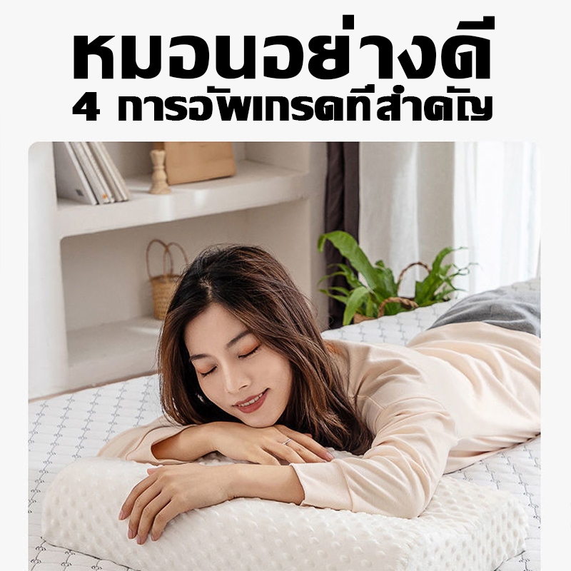 จุดเด่น หมอนลดกรน แบบเรียบ เพิ่มส่วนเว้าช่วยรองรับสรีระช่วงบน ลดอาการเจ็บบ่า ไหล่ขณะนอน