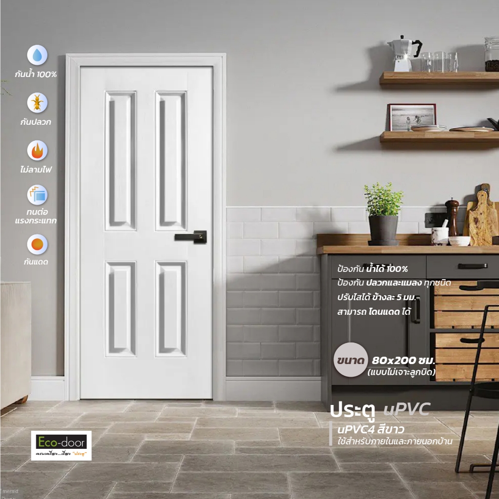 ประตู uPVC Eco-door รุ่น uPVC4 ขนาด 80 x 200 ซม. แบบไม่เจาะลูกบิด สำหรับภายในและภายนอก | กันแดด 100% กันน้ำ กันปลวก ไม่