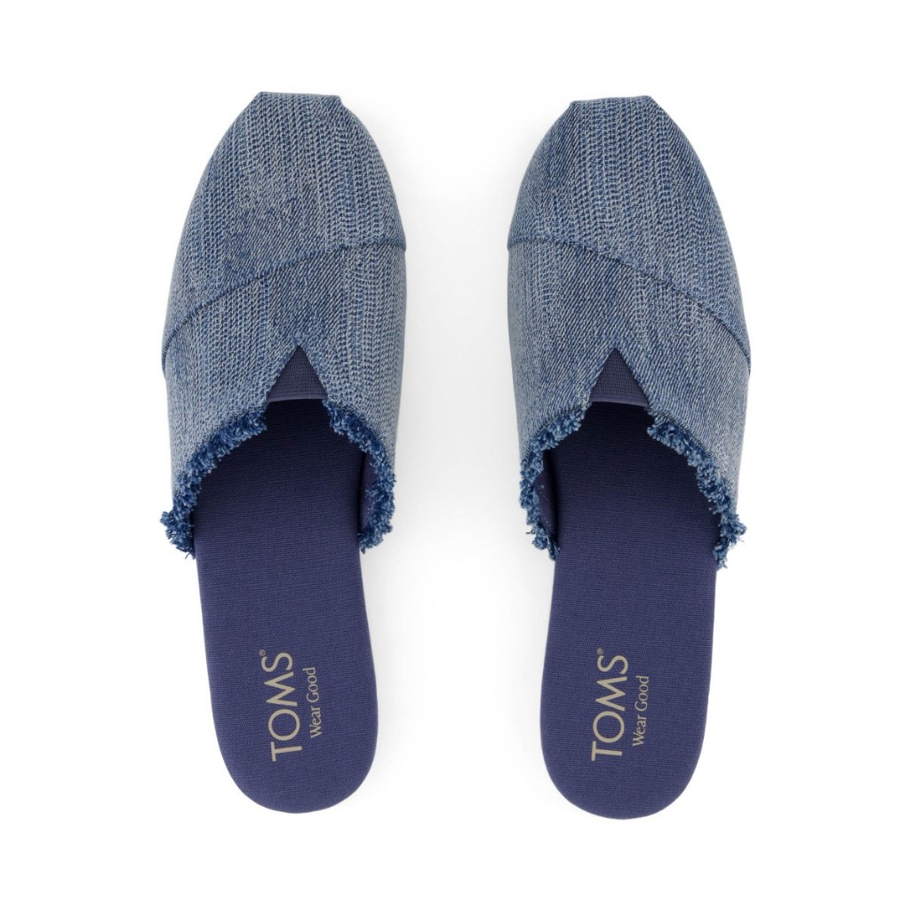 TOMS รองเท้าลำลองผู้หญิง สลิปออน รุ่น Alpargata Mule Dark Sky Textured Denim Fray (CE) รองเท้าลิขสิทธิ์แท้