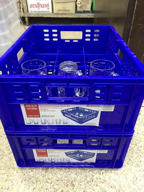 ลังใส่แก้วเบียร์ ลังคว่ำแก้ว สำหรับใส่แก้วมีหู ขนาด 12 ช่อง สีแดง/สีน้ำเงิน (ราคาต่อ 1 ใบ)