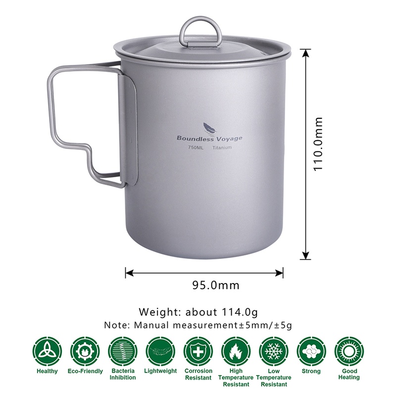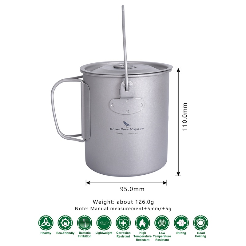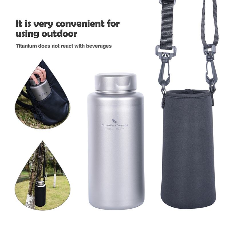 Boundless Voyage- ขวดน้ําไทเทเนียม ชั้นเดียว กันรั่วซึม น้ําหนักเบา 750 มล. สําหรับตั้งแคมป์ กลางแจ้ง 1 ลิตร
