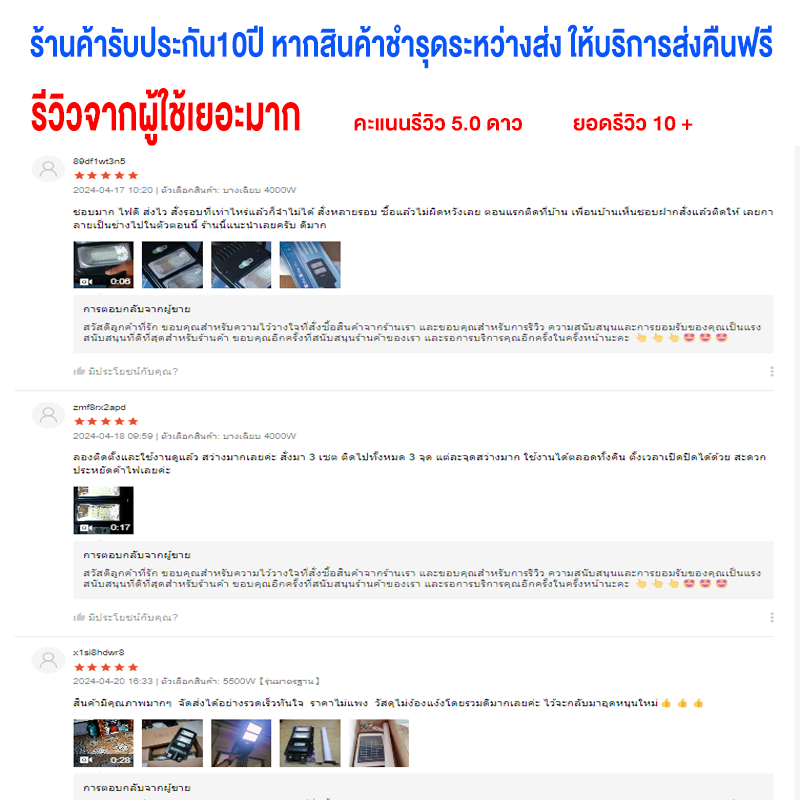 ??ร้านค้ารับประกัน10ปีสําหรับสินค้า ดูแลความปลอดภัยของโคมไฟและสินค้าพลังงานแสงอาทิตย์อื่น