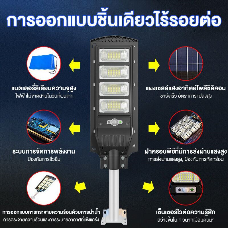 ไฟถนนโซล่าเซลล์ ไฟโซล่าเซลล์ 200000W Solar Light ไฟเซ็นเซอร์ตรวจจับคน IP68กันน้ำ กันฟ้าผ่า พร้อมรีโมท