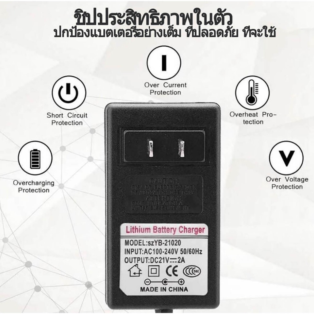 อะแดปเตอร์ชาร์จแบตเตอรี่ลิเธียม DC 12.6V 14.6V 16.8V 21V 21.9V 29.4V 2A แล้วตัดออก มีไฟสถานะการชาร์จ แบตเตอรี่เต็ม Li-ion