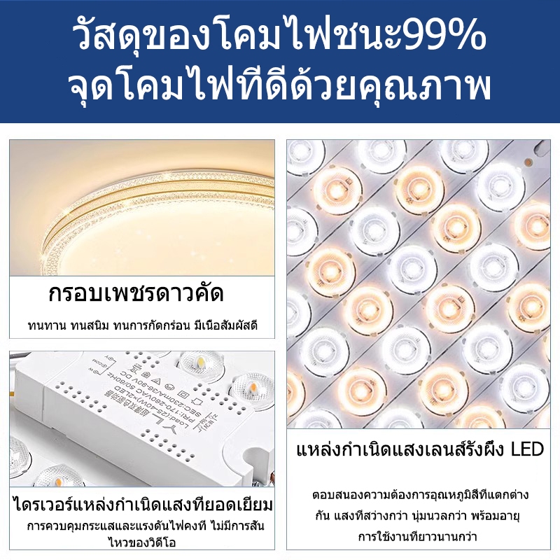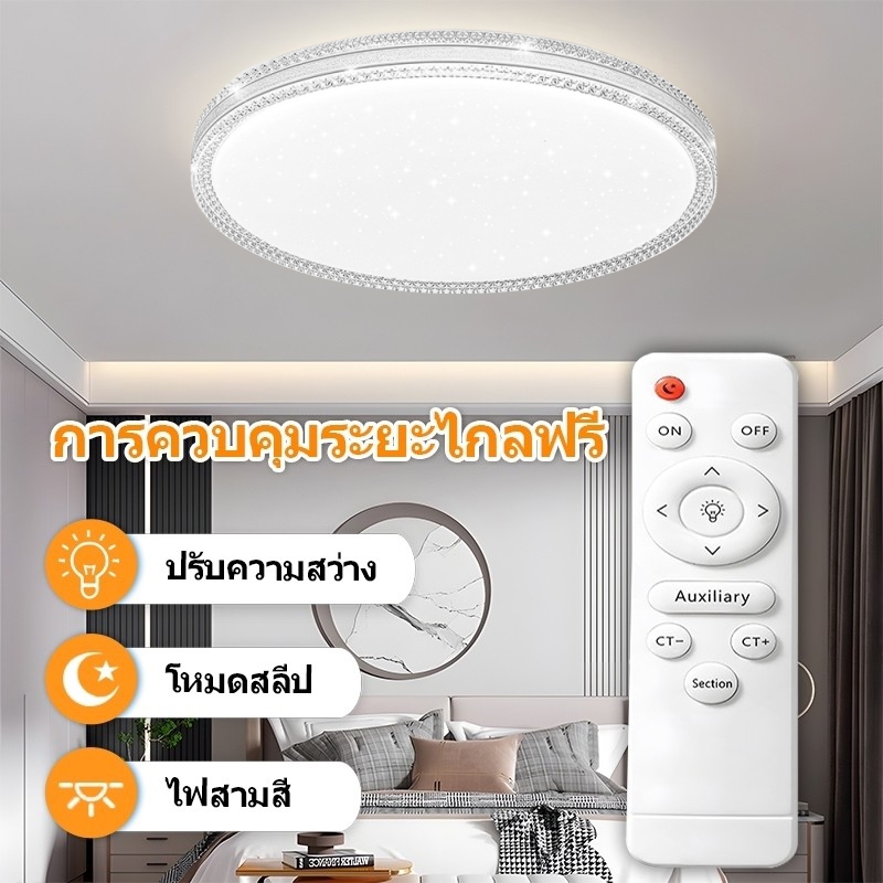 GOGEOUS ไฟเพดาน ลดแสง led 3สี โคมไฟเพดาน คริสตัลไดมอนด์ โคมไฟเพดานตกแต่งบ้านห้องโคมไฟเพดานสไตล์โมเดิร์นพร้อมรีโมทคอนโทรล