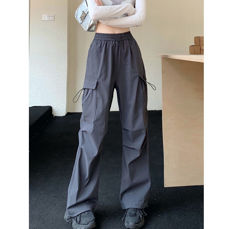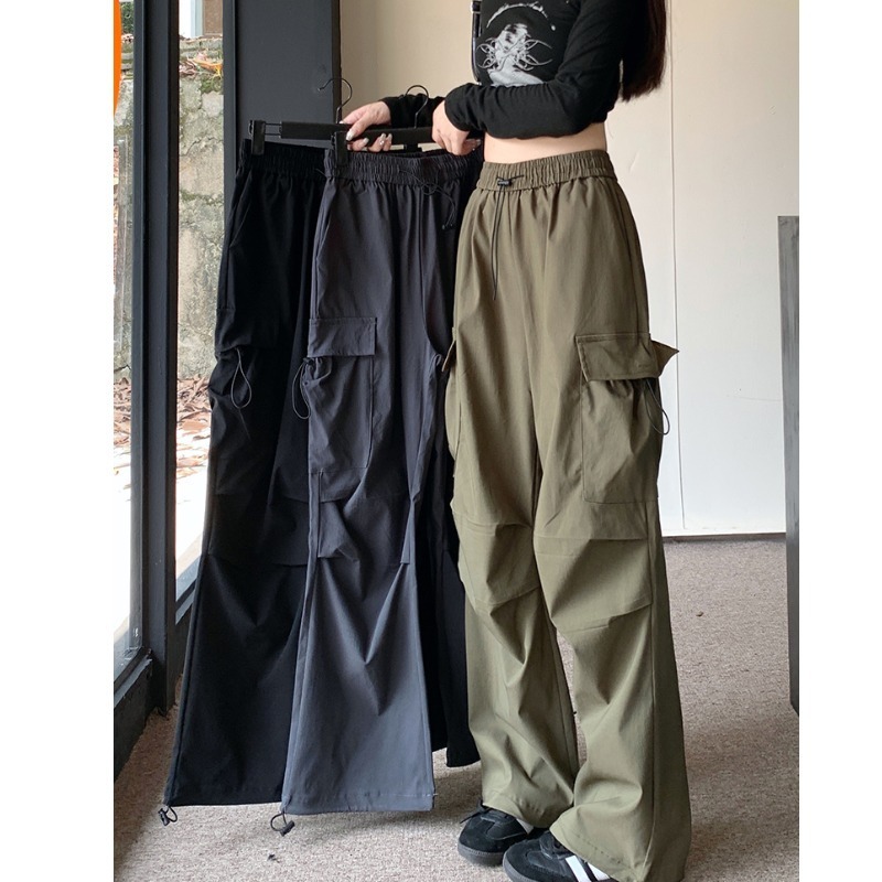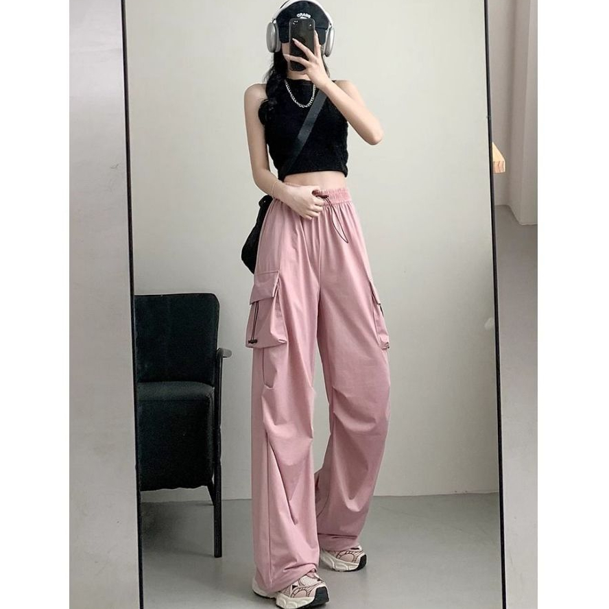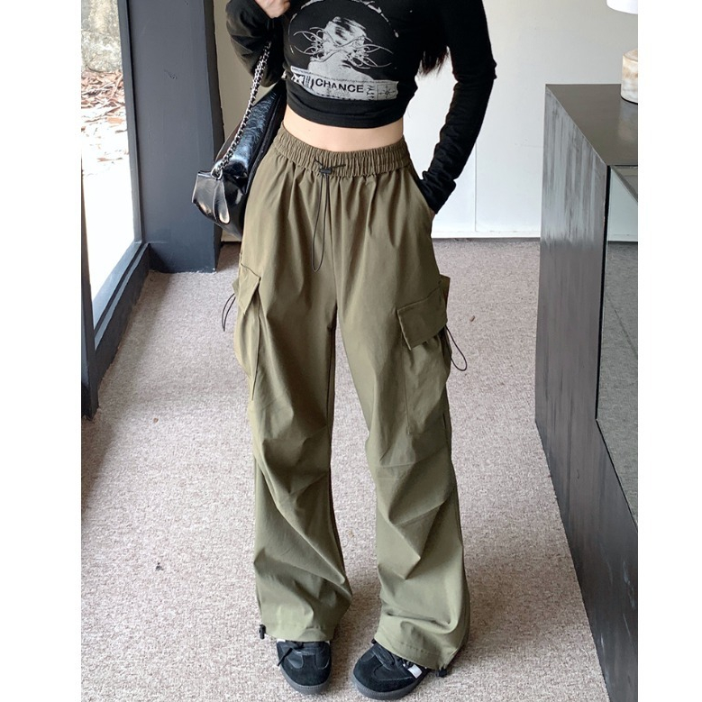 มีทั้งหมด5สี กางเกงเอวสูง กางเกงคาร์โก้ผู้หญิง กระเป๋าตรง 2ใบ มีเชือกที่เอว