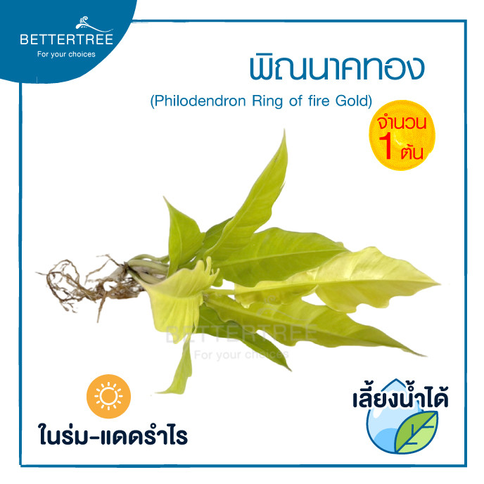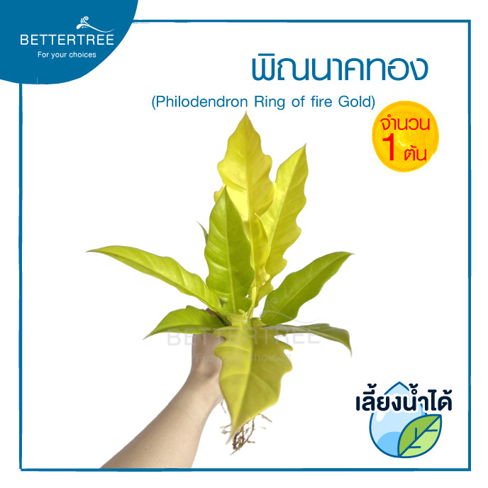 พิณนาคทอง(จำนวน 1 ต้น)เลี้ยงน้ำได้ ต้นไม้มงคล ต้นไม้ฟอกอากาศ Philodendron