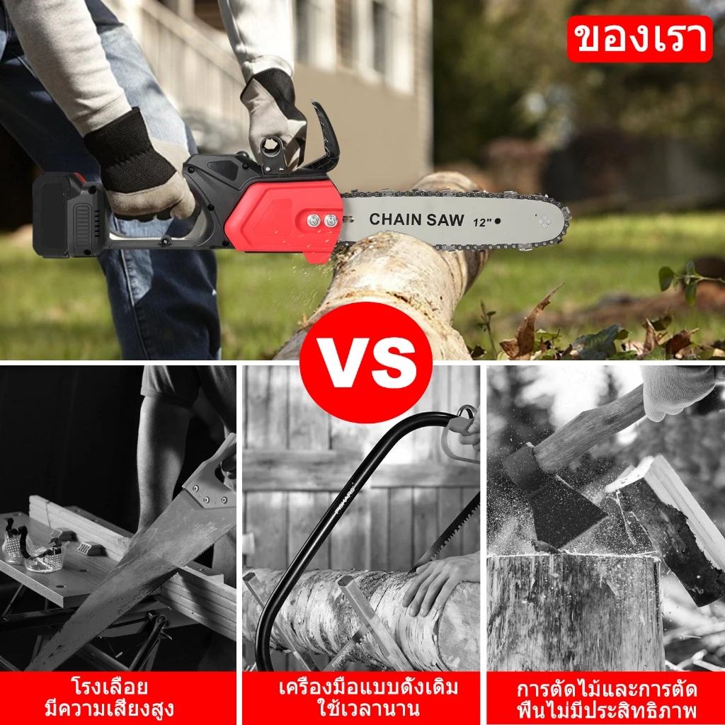 ? สต็อกในไทย ส่งไว ได้เร็ว ?2200W 48V เลื่อยไฟฟ้าไร้สาย เลื่อยยนต์ขนาด 12 นิ้ว เลื่อยยนต์ เลื่อยไฟฟ้าแบตเตอรี่ เครื่องตัด เลื่อยไฟฟ้า เลื่อยไฟฟ้าไร้สาย เลื่อยยนต์ เครื่องตัดไม้