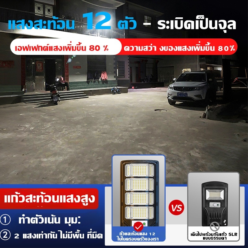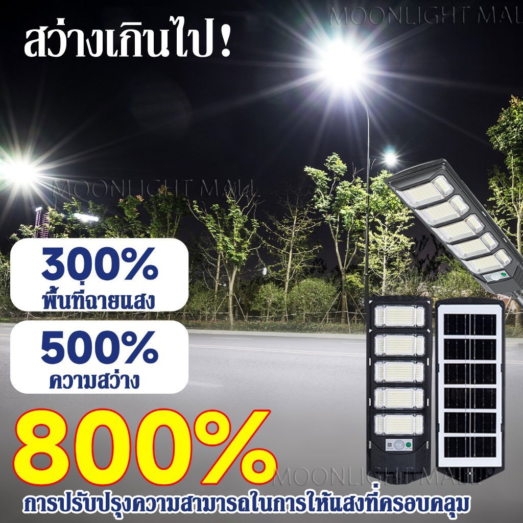 ไฟถนนโซล่าเซลล์ ไฟโซล่าเซลล์ 700000W Solar Light แสงสีขาว IP69 กัน้ำป้ องกันฟ้าผ่า สว่างขึ้นโดยอัตโนมัตตอนกลางคืน