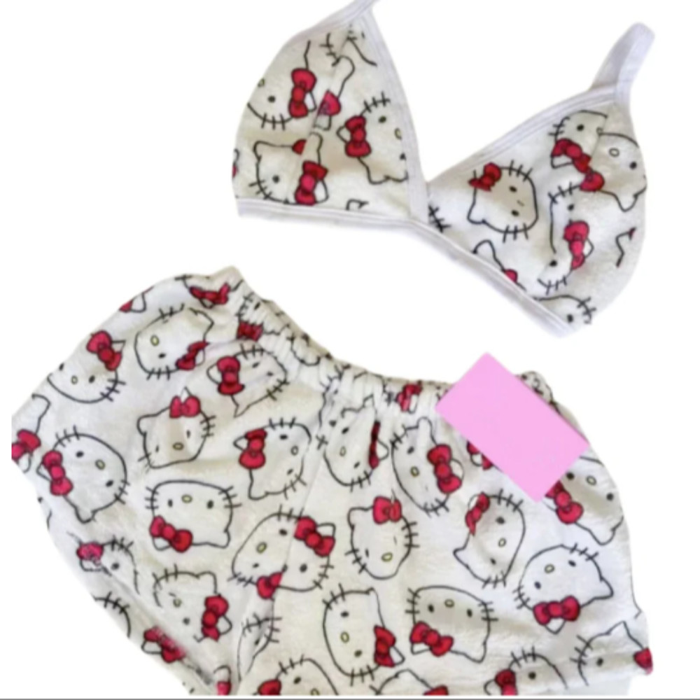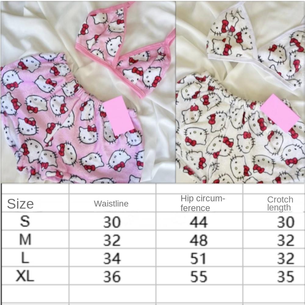 ใส่บ้าน SERIN,การ์ตูนสองชิ้นชุดนอนสุภาพสตรีหลวม,ฤดูร้อนHello Kitty Sanrio Kawaiiกางเกงนอนสําหรับผู้หญิง